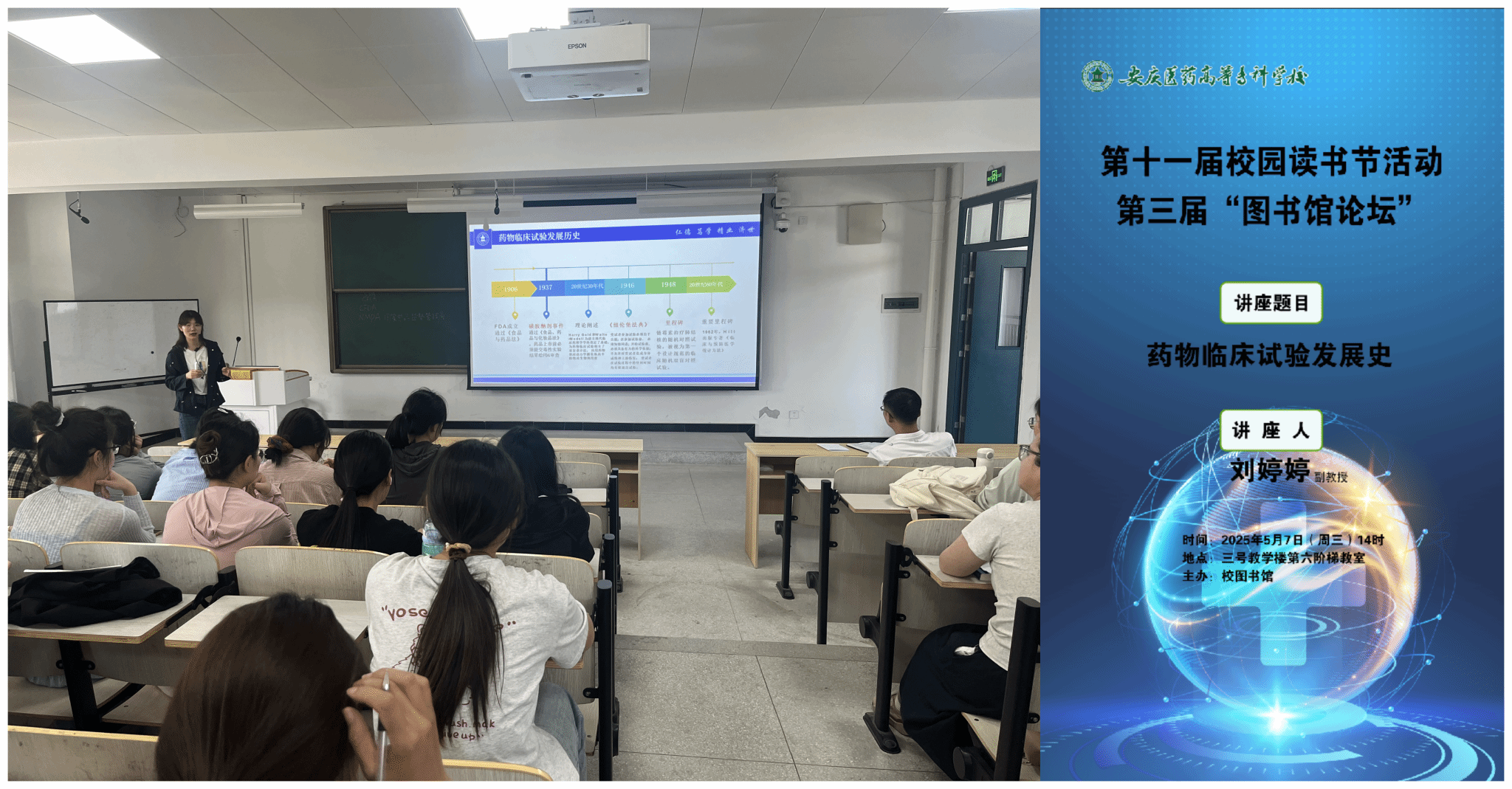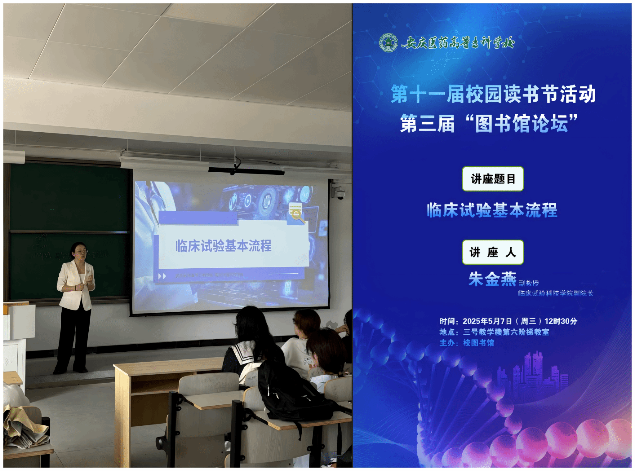 为助力学生提升专业素养,深化理论与实践结合能力。5月7日,临床试验科技学院副院长朱金燕副教授在第六阶梯教室举办了第三届“图书馆论坛”第八场讲座:“临床试验基本流程”,120余名学生到场聆听。