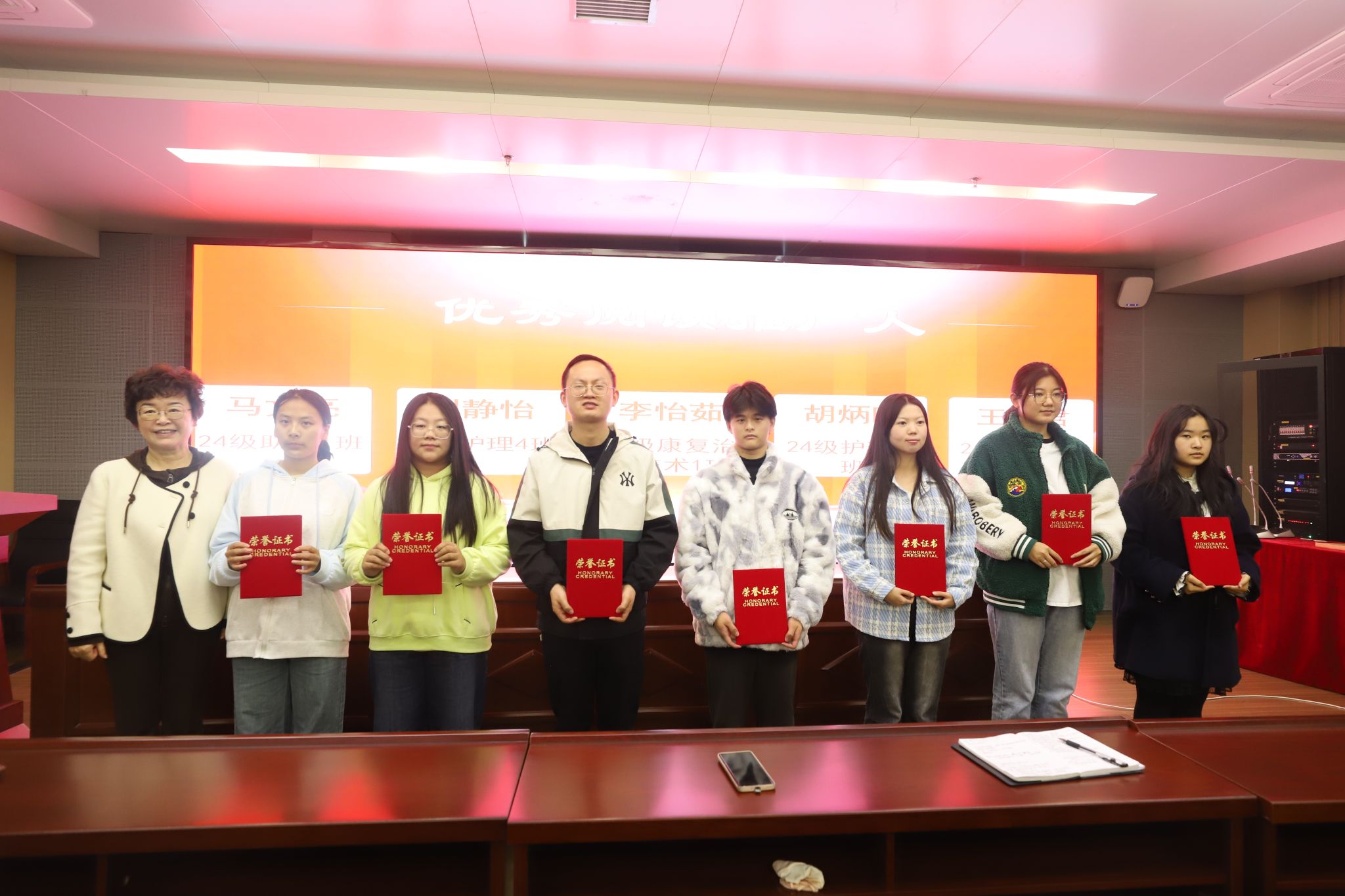 大会对首届优秀阅读推广人与集体进行了表彰。24级护理(专科)11班、24级中药学(专科)2班荣获“优秀阅读班级”称号,马文亮等五位同学荣获“优秀阅读推广人”称号。朱雯为获奖个人与集体颁发荣誉证书,充分肯定他们在推动校园阅读文化、营造书香氛围中所作的积极贡献。