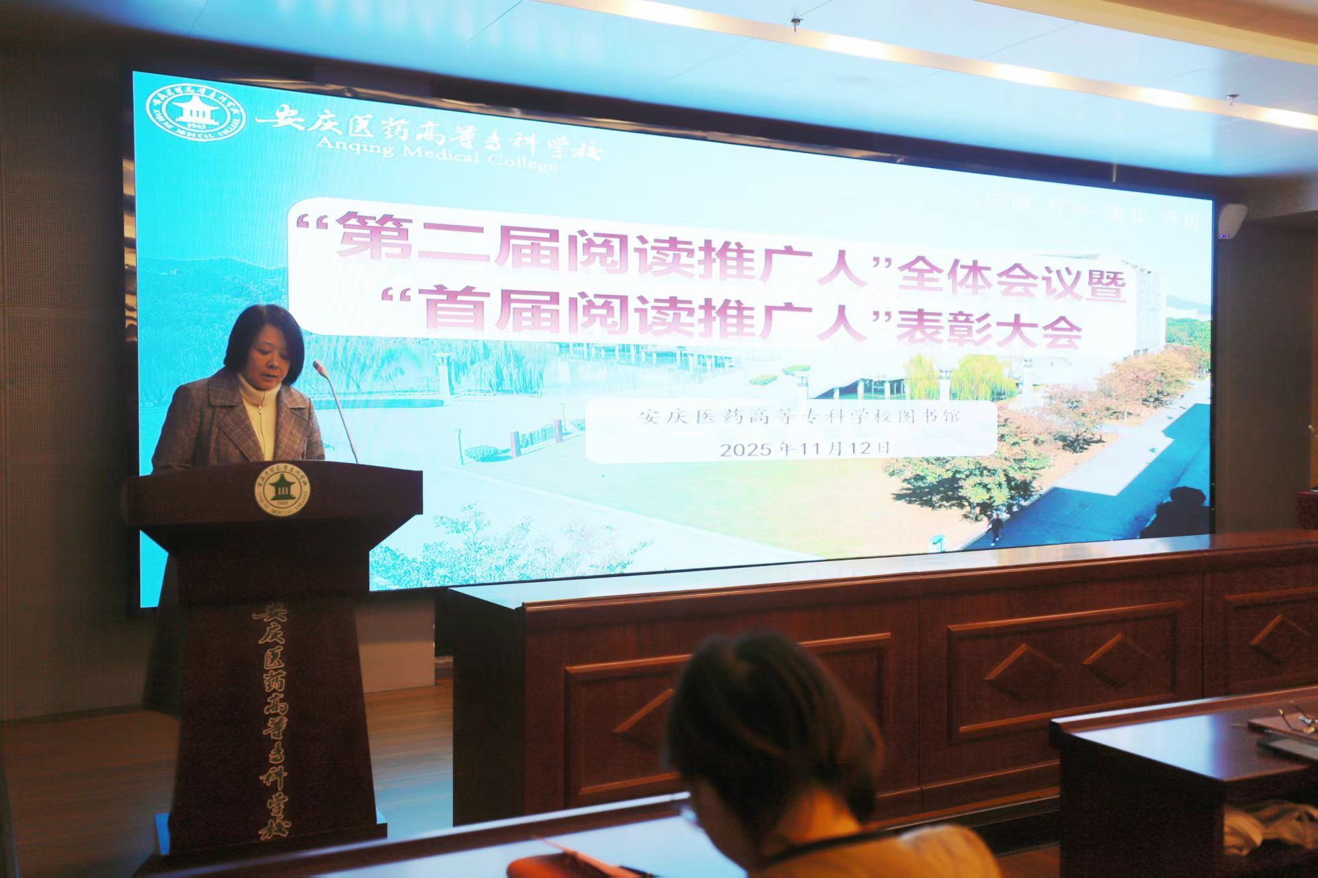会议宣布了安庆医药高等专科学校第二届阅读推广人名单及任期。本届团队共由74名同学组成,覆盖24级和25级74个班级。会后,第二届阅读推广人团队合影留念,标志着新一届阅读推广工作的正式启动。
