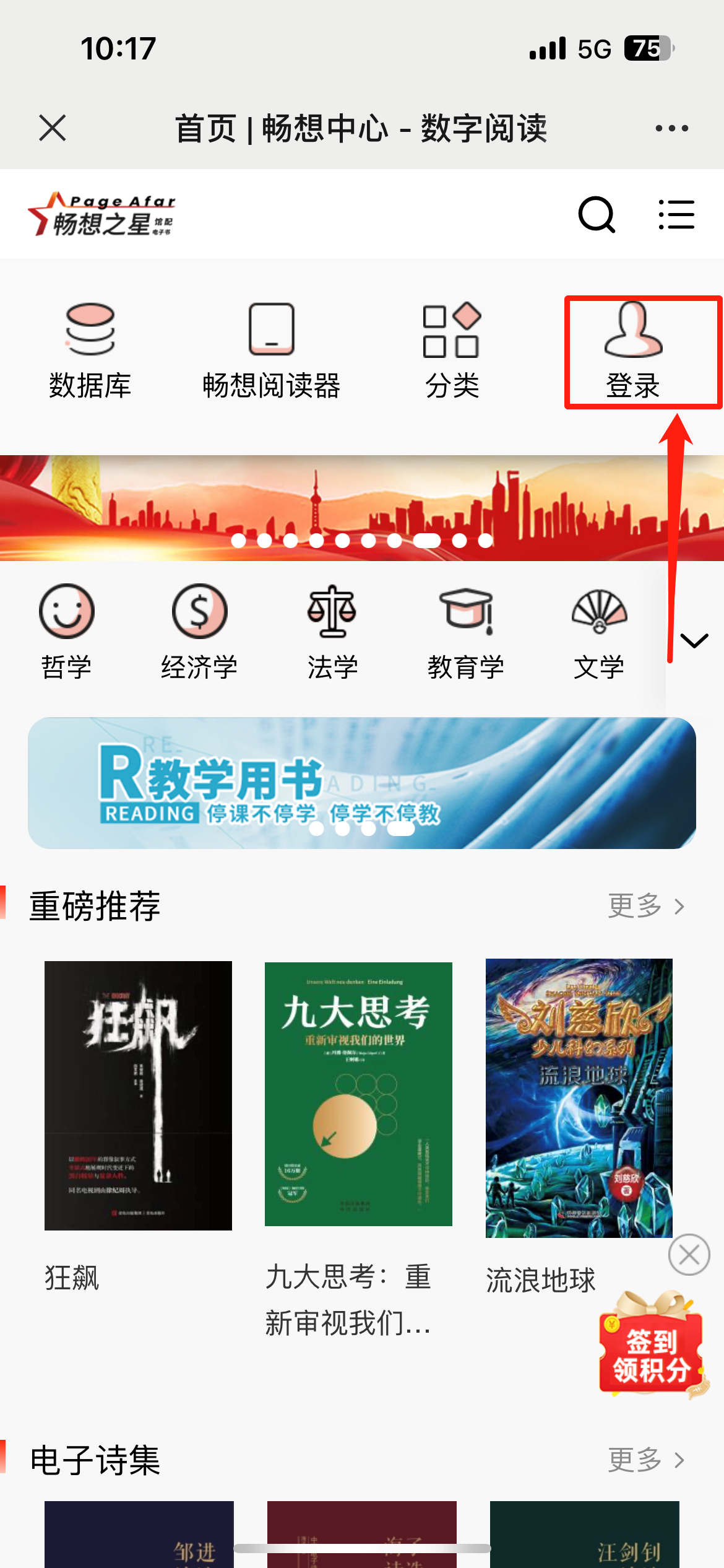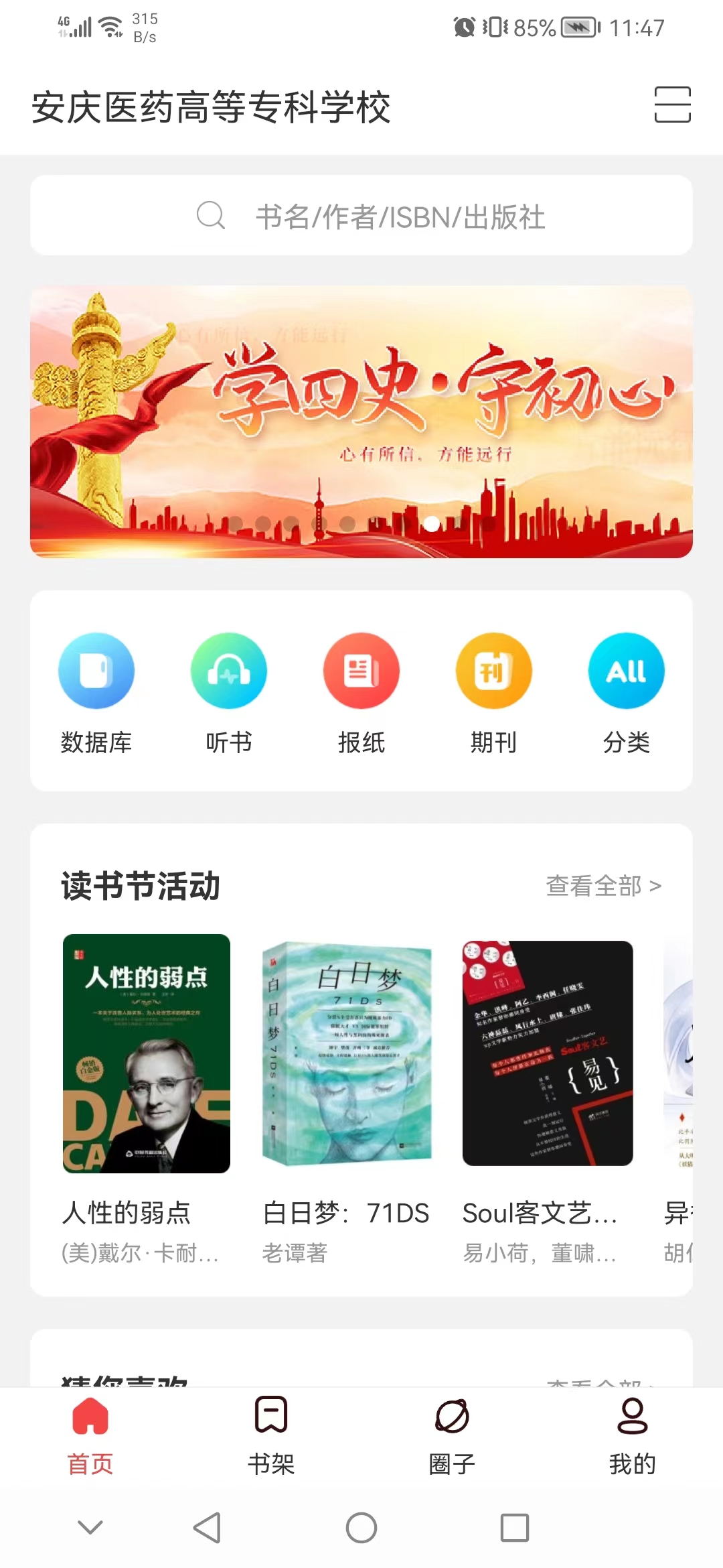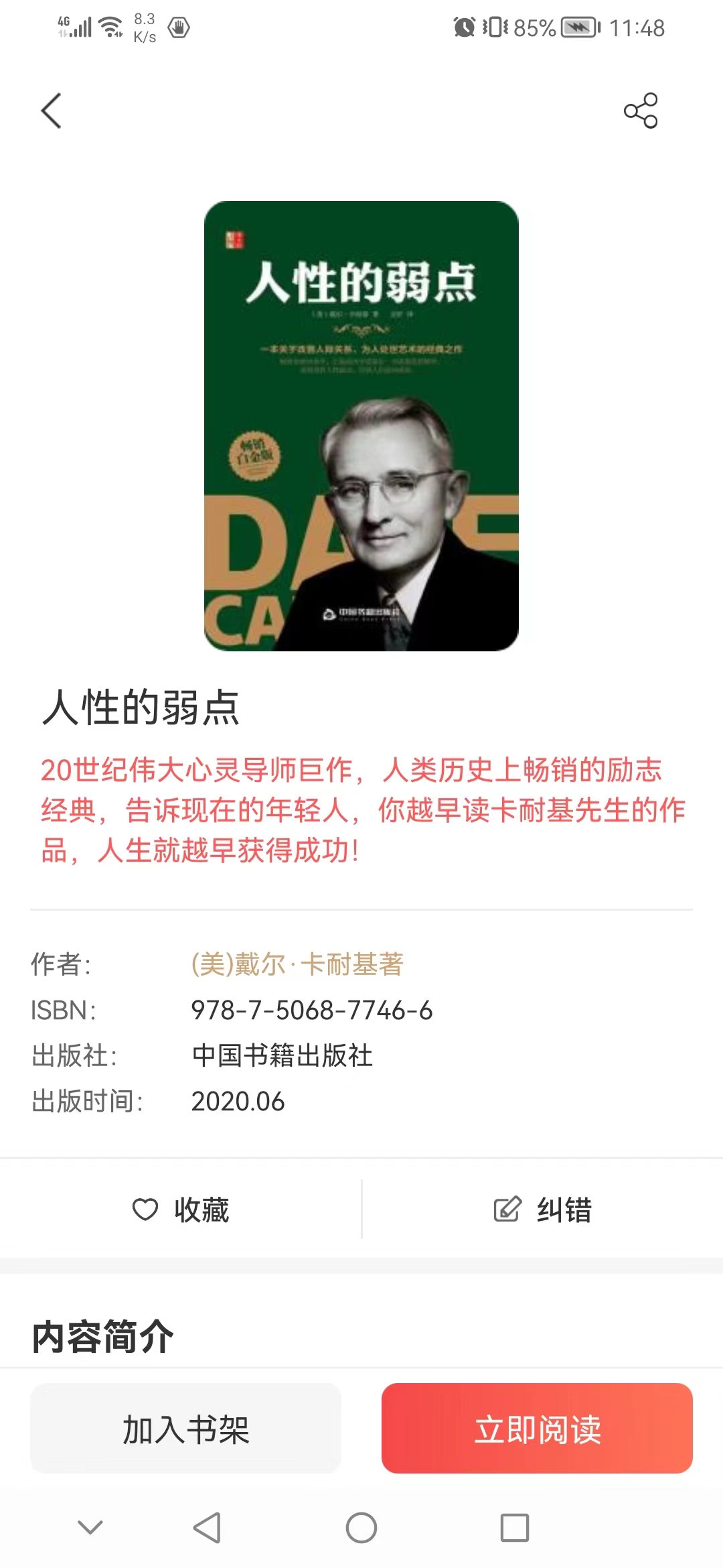 二十一、首页我们会看到各种数据库、听书、报纸、期刊(暂不支持使用),本次我们以“人性的弱点”这本书为例进行演示,点击进入该书