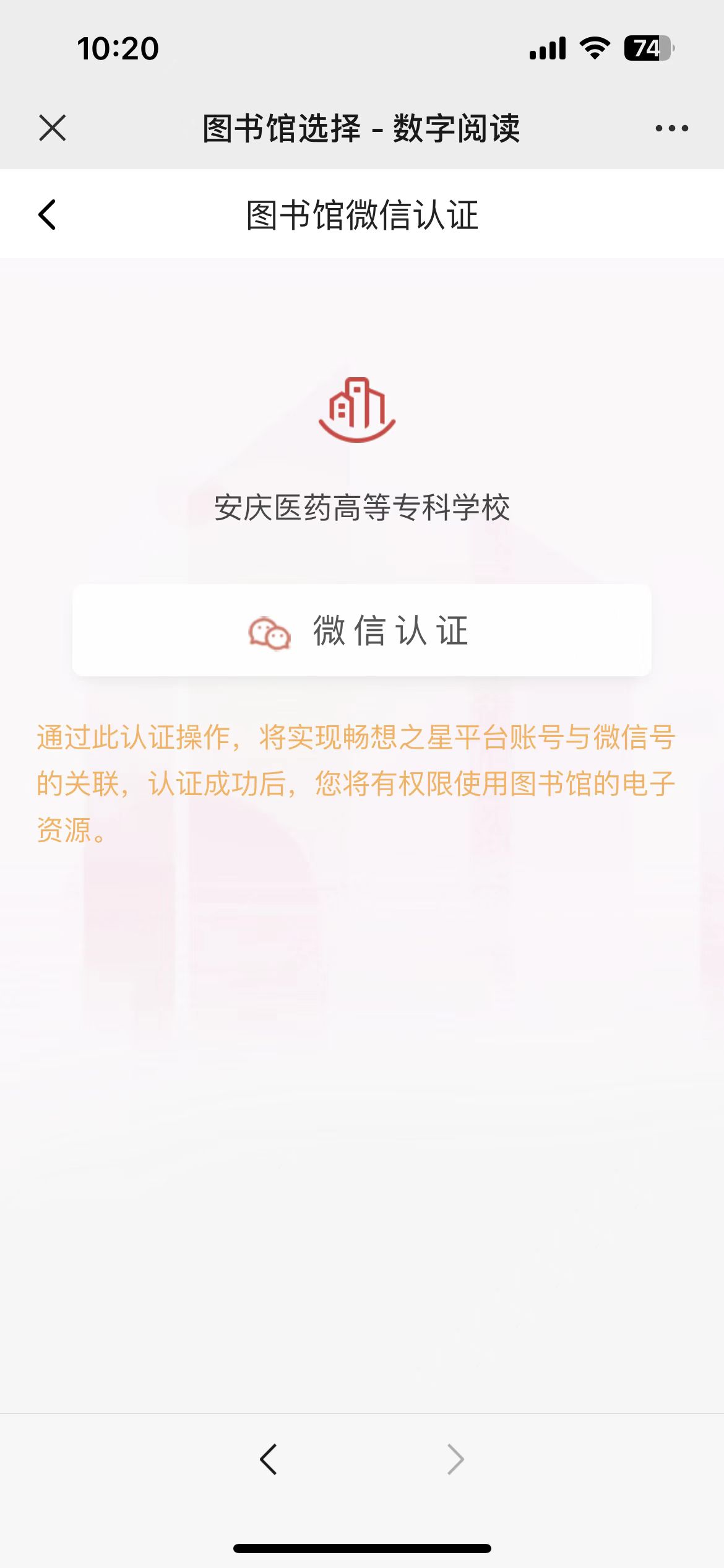 十五、系统会自动跳出我校名称,如未跳出,可手动在上方搜索“安庆医药高等专科学校”,然后选择“微信认证”