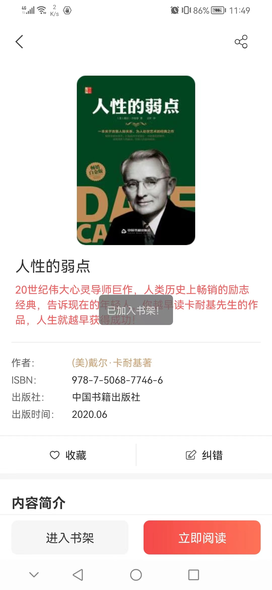 二十二、点击左下方“加入书架”,显示“已加入书架”