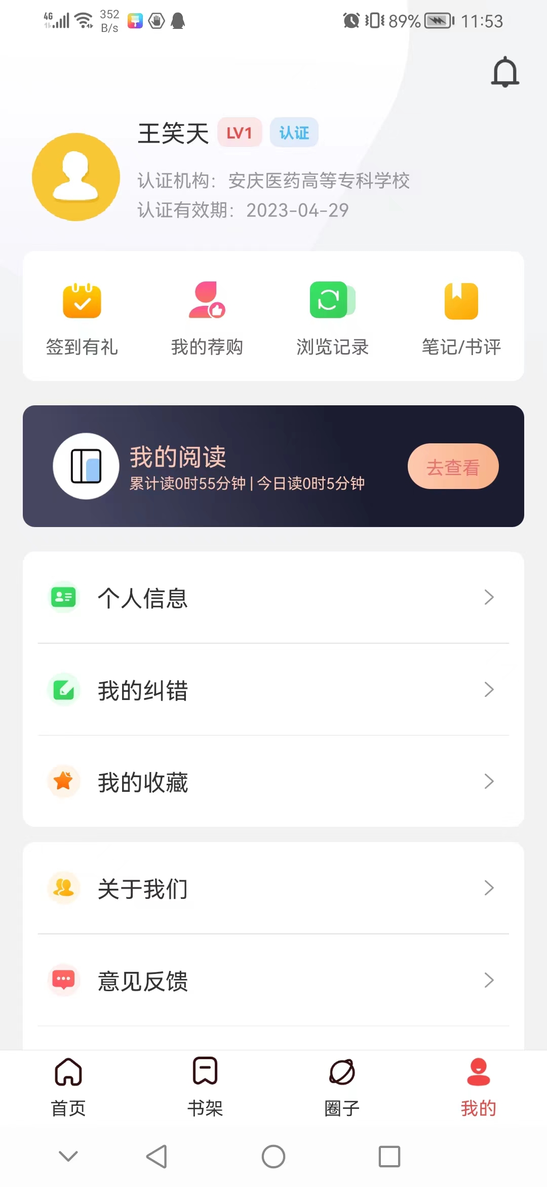 二十七、点击主页“我的”按钮,我们可以看到我们的“浏览记录”、“笔记/书评”、“阅读时间”及“个性化设置”