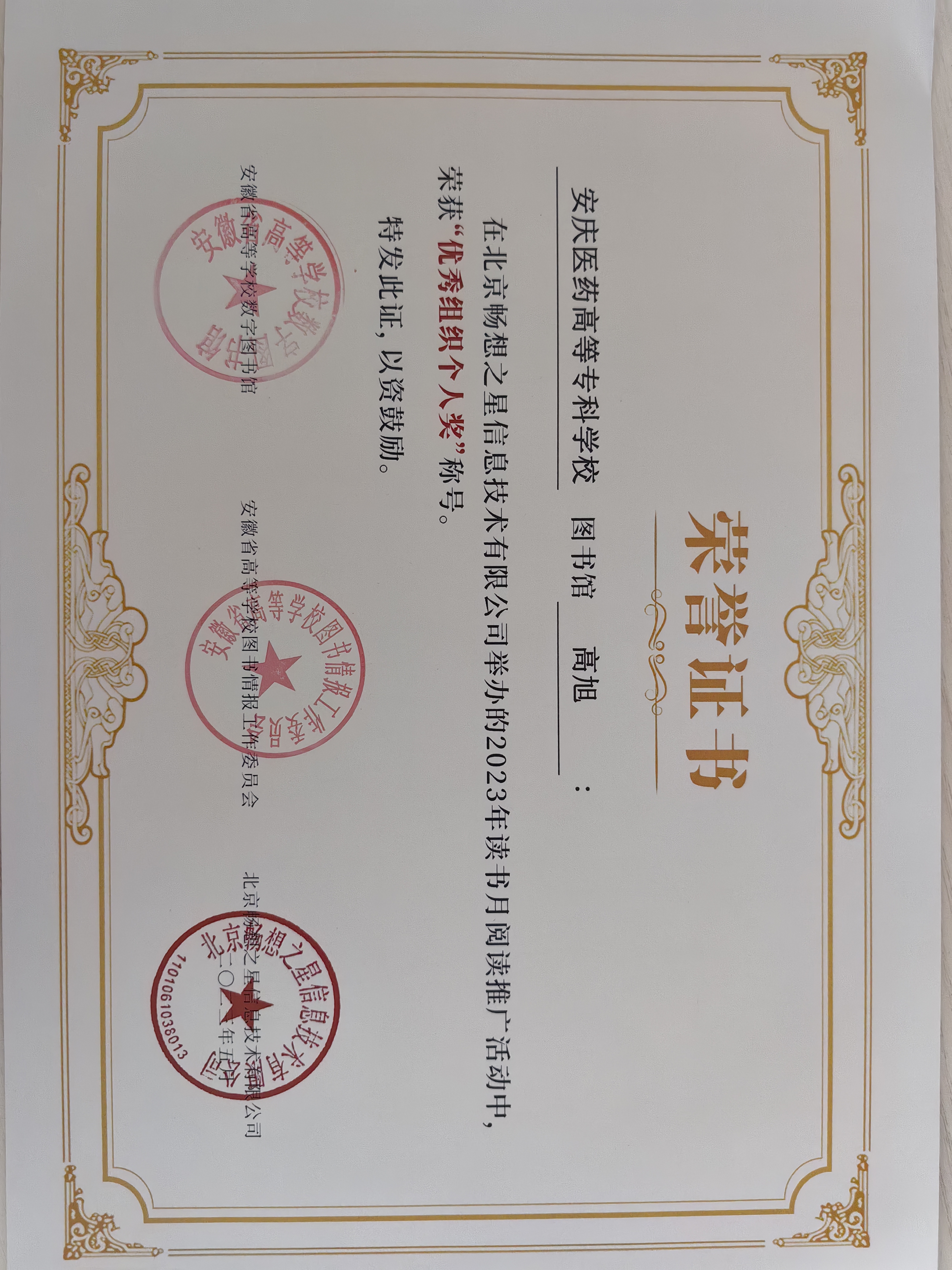我校共有295名读者参与,校图书馆荣获“阅读推广优秀组织单位”称号,图书馆负责人高旭荣获“优秀组织个人奖”,护理学院护理(专科)22级10班赵依蕾、医学院临床医学(专科)22级3班张鑫荣获省赛四等奖,医学院临床医学(专科)22级4班肖国瑞、护理学院护理(专科)21级10班葛艳荣获省赛纪念奖;同时赵依蕾荣获国赛四等奖,张鑫、肖国瑞荣获国赛纪念奖。恭喜!