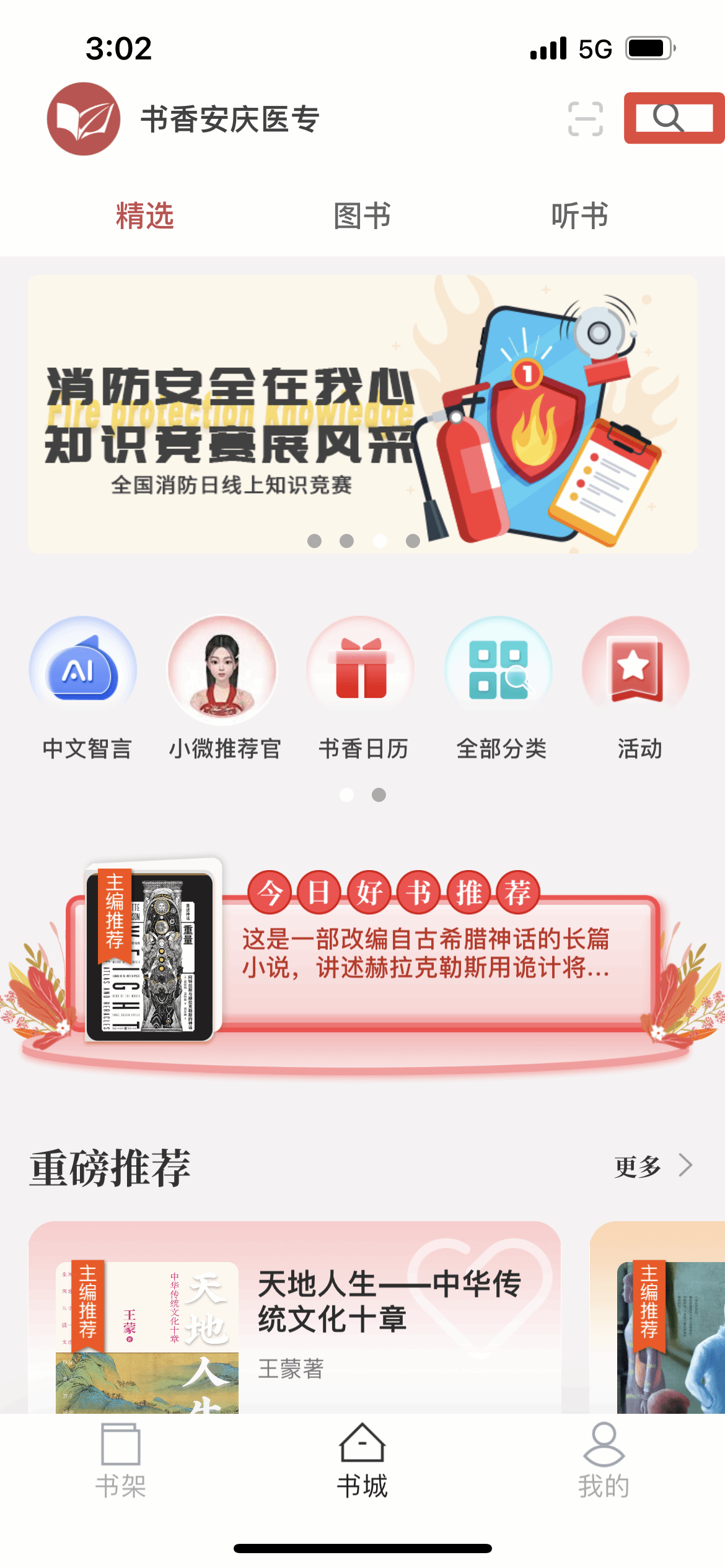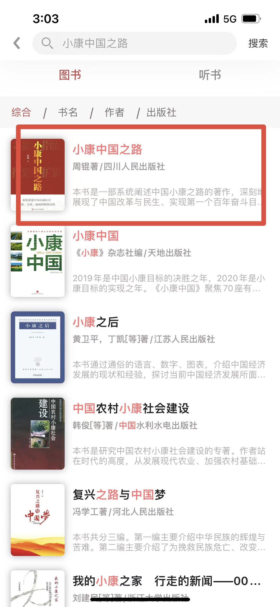 第四步:手机端成功进入资源库后,点击“书城”,通过右上方搜索键,即可搜索图书,找到图书后点击左下方“全本下载”,图书进入“我的书架”后,右下方“试读”将显示为“阅读”,此时即可畅读该本图书。