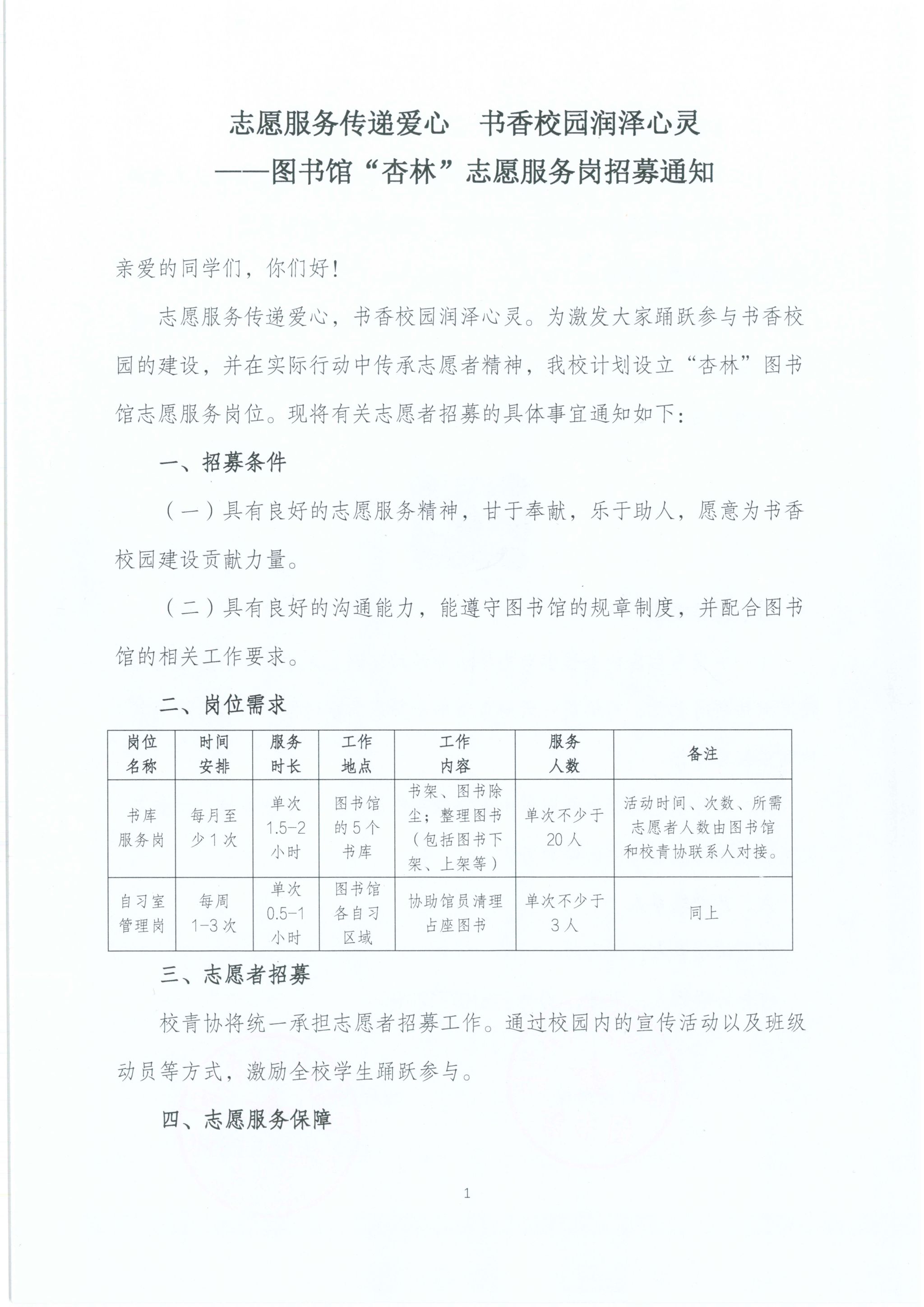 志愿服务传递爱心 书香校园润泽心灵——图书馆“杏林”志愿服务岗招募通知
