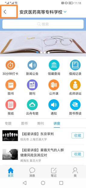 点击图3中的“首页”,选择“安庆医药高等专科学校yzaqyz”即可返回图1界面。