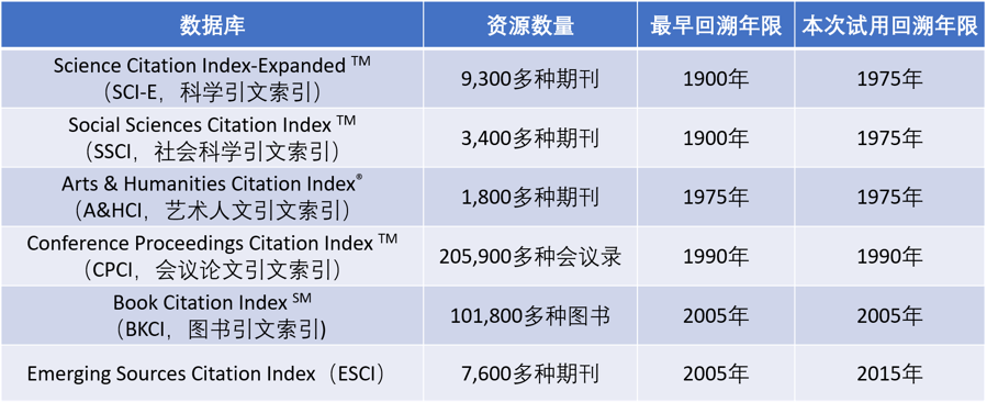 为更好地帮助全体师生开展学习和科研,我校已开通科睿唯安 Web of Science 核心合集、DII、InCites B&A 等数据库免费试用: