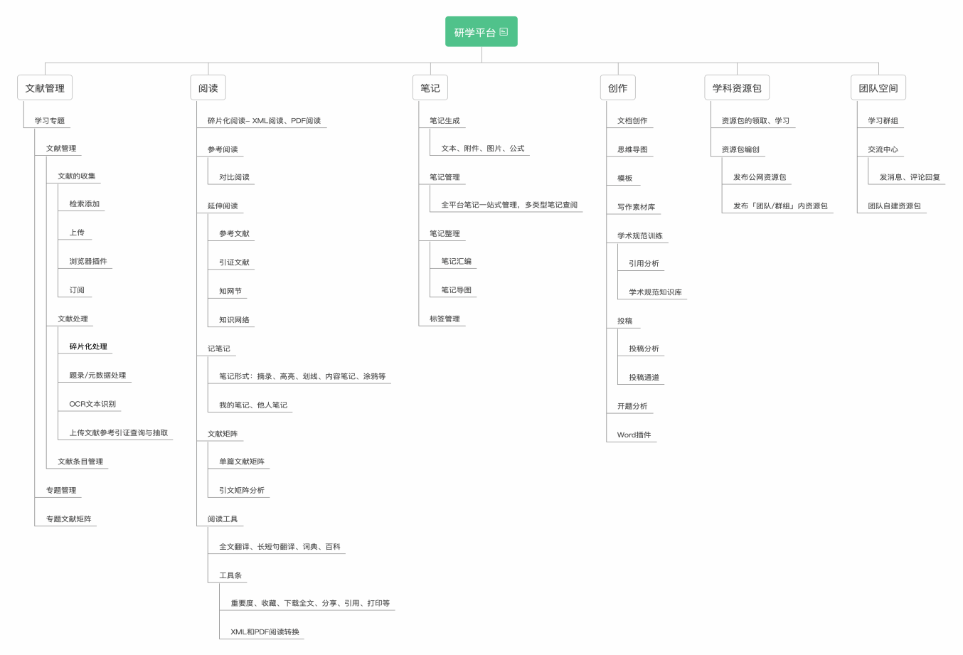知网研学(x.cnki.net)是一个文献阅读与论文写作平台,集文献检索、文献管理、深度阅读、论文创作、笔记整理、阅读写作训练与指导等功能于一体,提供个性化的学习服务,支持Web/桌面/APP多端云同步。核心功能包括:文献、视频课程一站式管理和学习;学科大牛、学科编辑对学科优质文献进行汇编、点评、导读;边阅读边记笔记、参考引证知识网络、全文翻译;文献矩阵、笔记导图、笔记汇编等;写作素材一键引用、自动生成参考文献、智能排版、格式检查、学术规范训练。