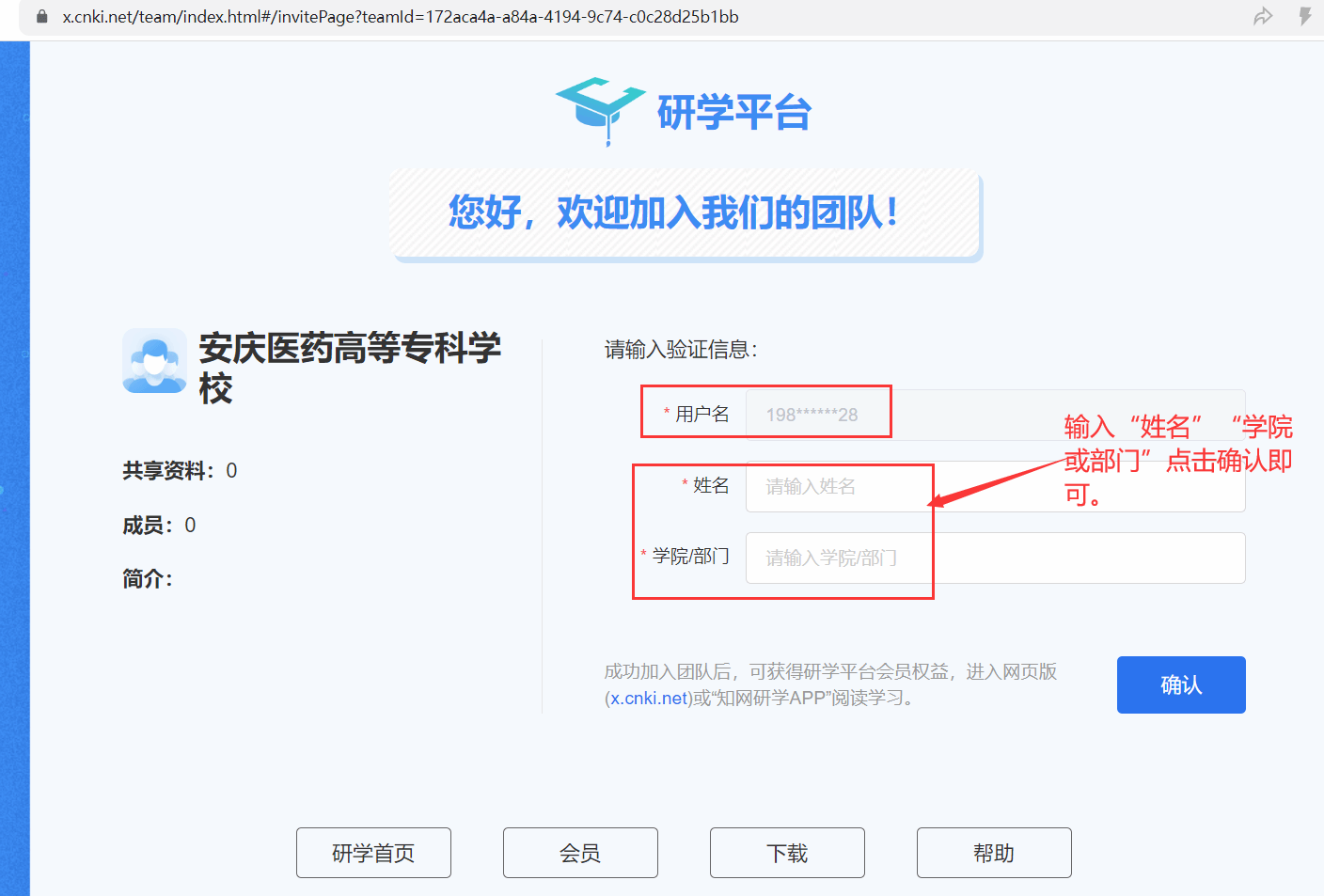 第一步:点击安庆医药高等专科学校研学平台团队的邀请链接: