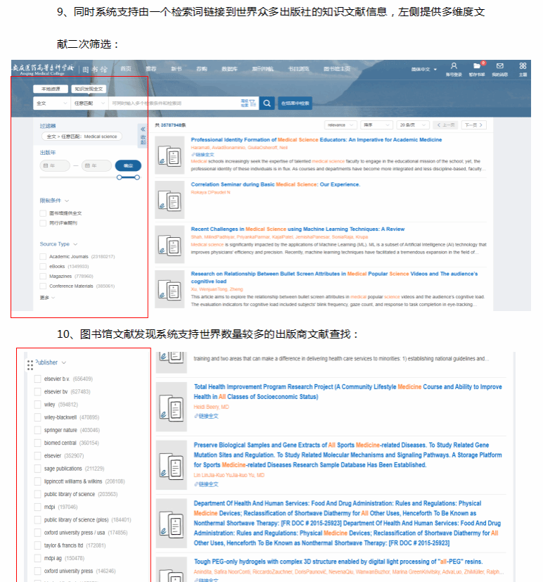 提供便捷的馆藏纸质资源和电子资源访问途径,用户无需安装客户端,可访问学校图书馆订购的各类纸质资源与电子资源,实现一站式检索或下载服务。