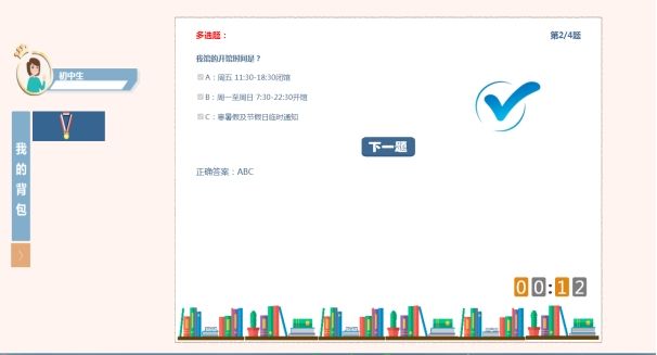 读者入据库是一款以多媒体课件教育为依托、通过游戏化的方式和寻宝闯关的故事情节,读者自主在线学习和考试的一款产品。