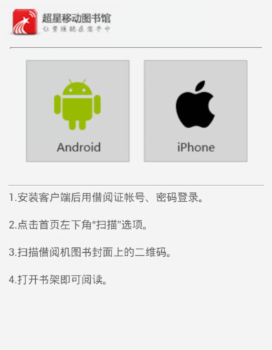 扫描图书二维码后,按照提示下载超星移动图书馆客户端,选择相应的手机系统,然后选择下载安装。打开扫一扫,即可将图书添加到书架进行离线阅读。