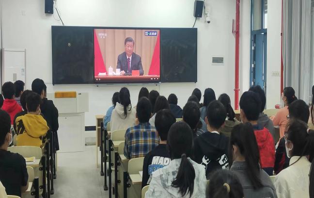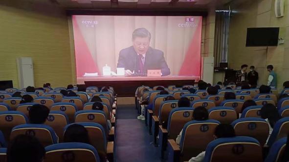 5月10日上午,庆祝中国共产主义青年团成立100周年大会隆重举行,中共中央总书记、国家主席、中央军委主席习近平发表重要讲话。我校组织各级团组织、团干部在教室、寝室等地集中或自行收看大会,校党委委员陈琪、各学院党总支副书记与学生代表一起在学术报告厅主会场收看大会直播。