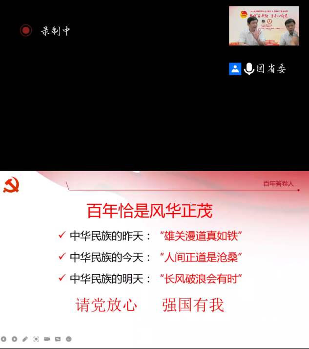 本次学习以习近平总书记“七一”重要讲话为主线,团安徽省委副书记胡靖和安徽师范大学路丙辉教授从不同的角度为学员解读讲话精神。胡靖的专题讲座引经据典、深入浅出,将“七一”重要讲话精神放入民族和世界的历史舞台中,全面解读了百年党史的红色密码;路丙辉的报告既有亲身经历伟大庆典的深切体悟,也有系统学习“七一”重要讲话精神的深入思考,视野开阔、内涵丰富、分析透彻。两位专家给“青马工程”高校班的学员们上了一堂生动又发人深省的党史思政课,让学员们感触颇深。