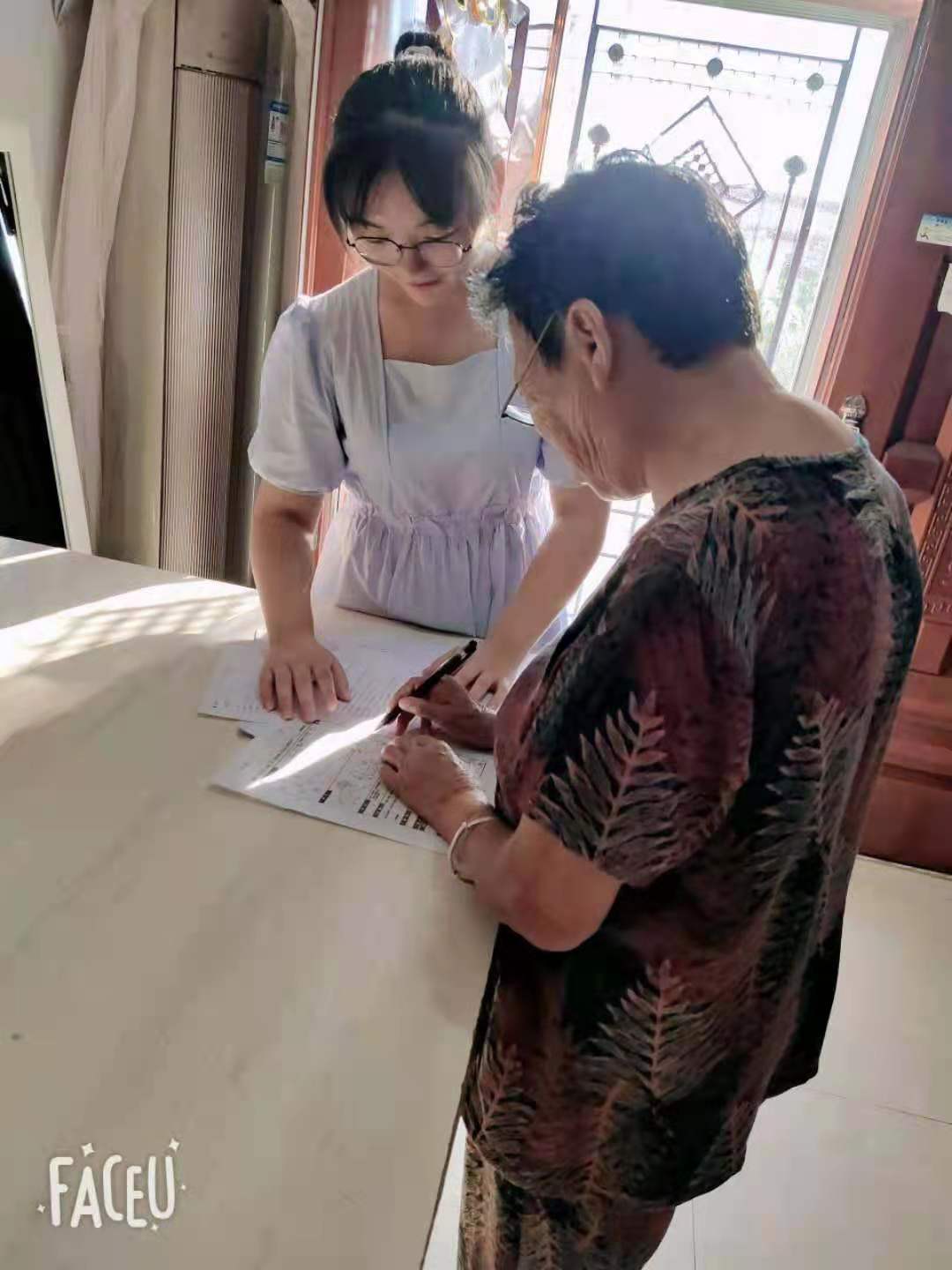 这次实践活动开展于寿县茶庵镇的小村庄上,最让我记忆犹新的是我第一次忐忑而又不好意思地敲响邻居家的大门,因为在这未知的过程中,我不知道还有什么难题在等着我,在鼓起勇气敲响大门之后,就这样迎来了我的第一个社会实践活动的问卷调查者,面对老人的问题我努力做到有耐心,协助老人写字,阅读。虽然这次调查填写有点慢,但是也很愉快的过去了,第一次的成功极大的鼓励了我,让我有了信心,有了对接下来问卷调查的问题解决方案。