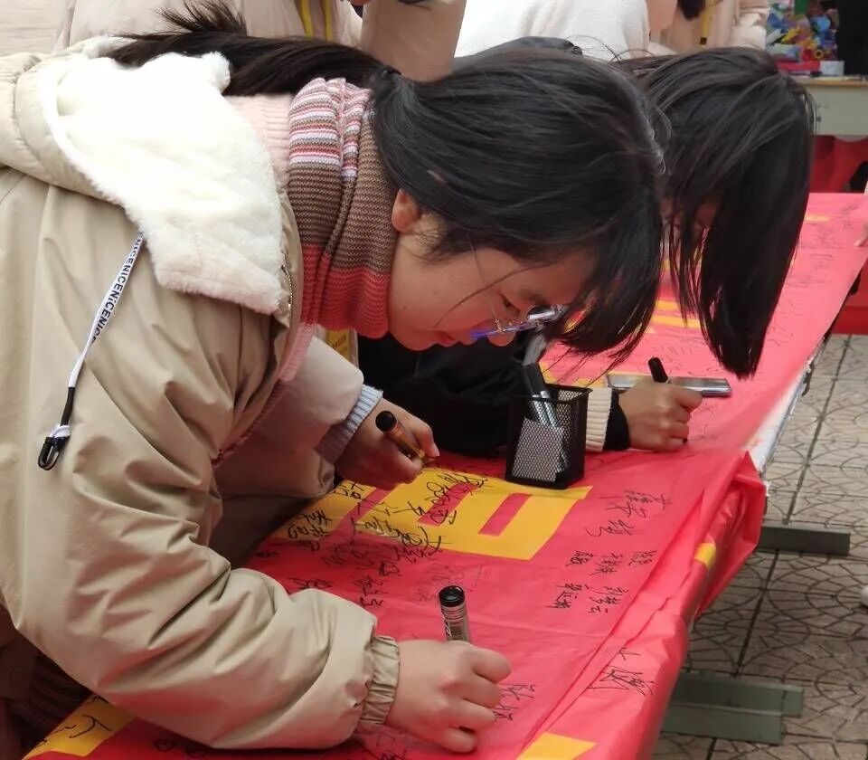 活动开始之前外联部提前将活动横幅及所需的签字笔准备好,志愿者们积极宣传,让更多的大学生们参与进来。志愿者们引导大学生们有序地排队签字,宣传部在大家签字时进行拍照。活动结束后,校青协成员将横幅收回,现场卫生打扫干净后,由宣传部组织合影留念,并及时更新网络平台。