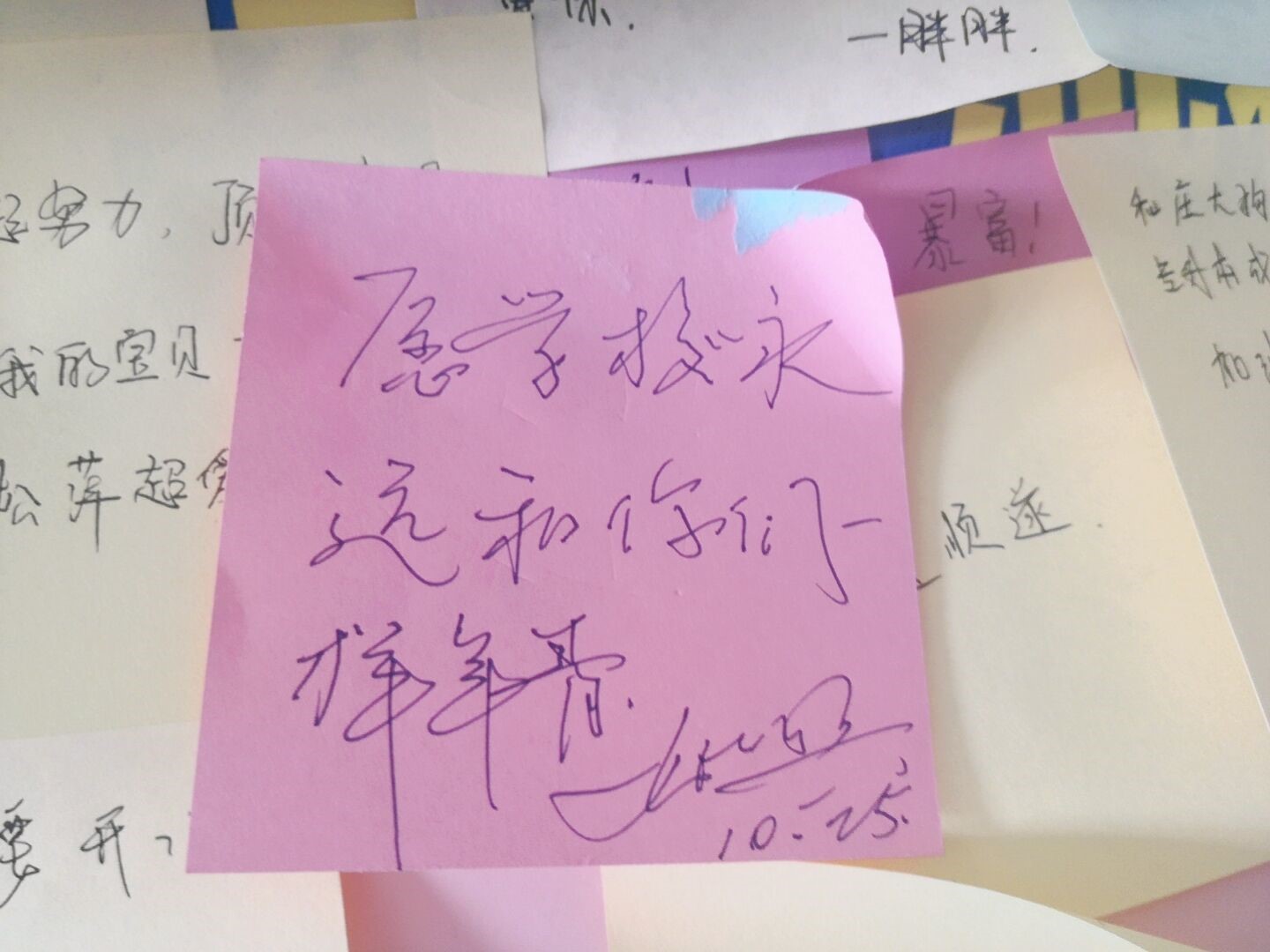 一张张承载着期望的便利贴贴满展板,一个个满是祝福的签名签满横幅。通过此次活动,同学们进一步加深了对母校的情感。回顾过去,我们无比自豪;展望未来,我们信心十足。在这个特殊的日子里,我们向母校致以最诚挚的祝福,愿母校永远辉煌,永远充满生机!追忆往昔,岁月峥嵘,桃李满天,人才辈出。展望未来,前景光明,齐心协力,再创辉煌!