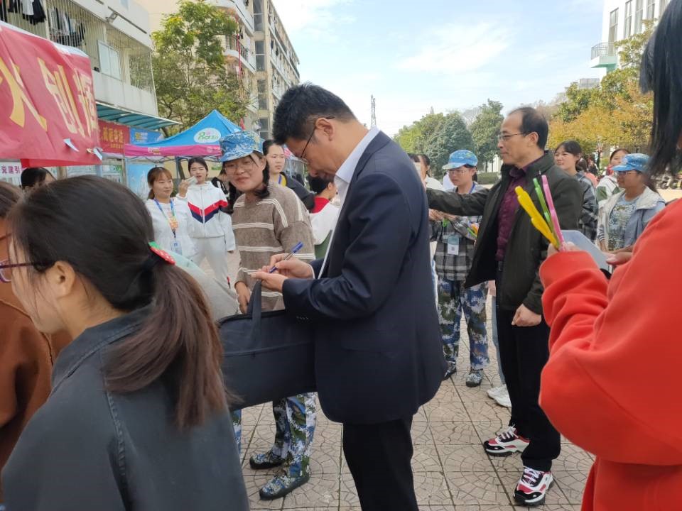 我校自1943年成立至今已有77年的历程。77年风雨沧桑、弘歌不辍,77年峥嵘岁月、薪火相传。恰逢周末,社联、校青协的小伙伴们一早便在大学生活动广场撑起了帐篷,摆放好桌椅。用“心愿便利贴”的方式收集同学们对学校祝福、对未来的期许,并在横幅上签下自己的名字。姚校长的莅临更是将此次活动直接引到了高潮,“愿学校永远和你们一样年青”,短短十二字,是姚校长对学校成立77周年的赞美,亦是对医专学子无限未来的期许。