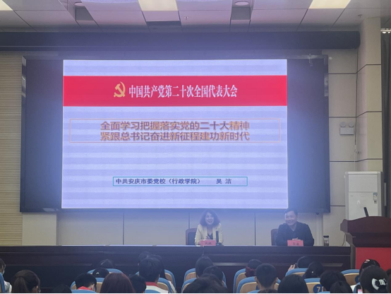 吴洁作《全面学习把握落实党的二十大精神紧跟总书记奋进新征程建功新时代》专题报告,围绕党二十大所处的历史方位、二十大主题及重要意义等方面,结合当前实际,深刻阐释党的二十大精神。