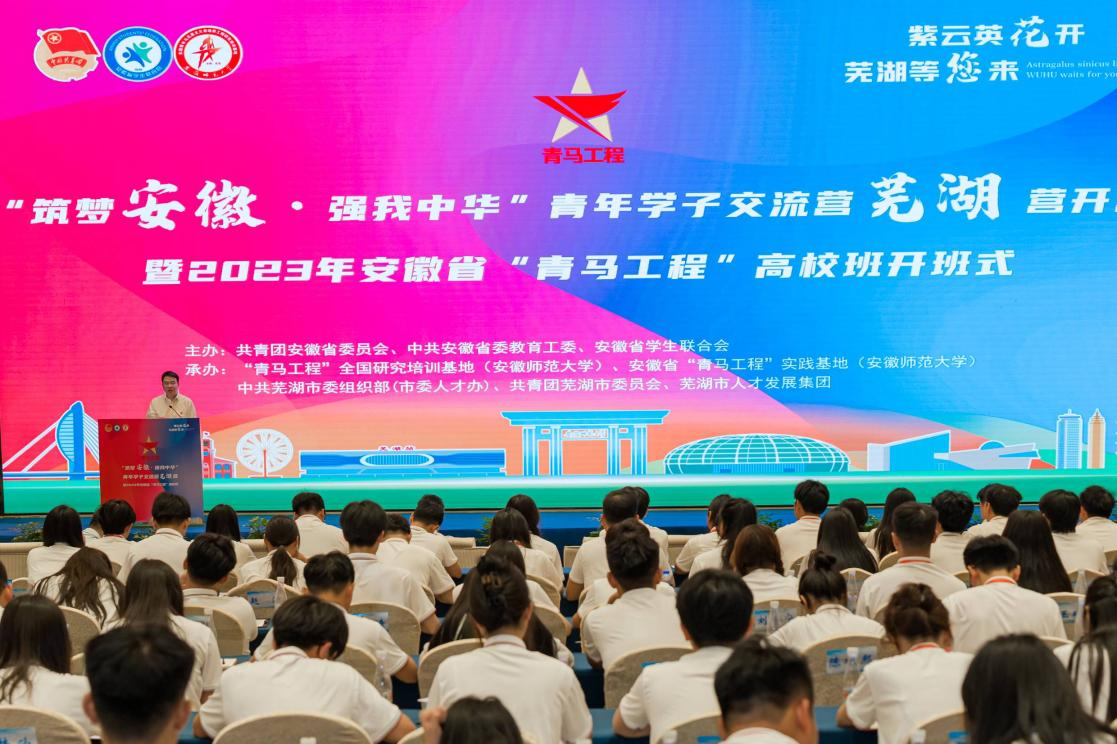 8月30日,“筑梦安徽·强我中华”青年学子交流营芜湖营暨2023年安徽省“青马工程”高校班活动开营开班。来自省内120所高校的400名优秀青年学子来到芜湖,开启逐梦之旅、扬帆起航。团省委书记陈明生,安徽师范大学党委副书记周旭,副市长丁百静出席,团省委副书记窦贤琨主持。