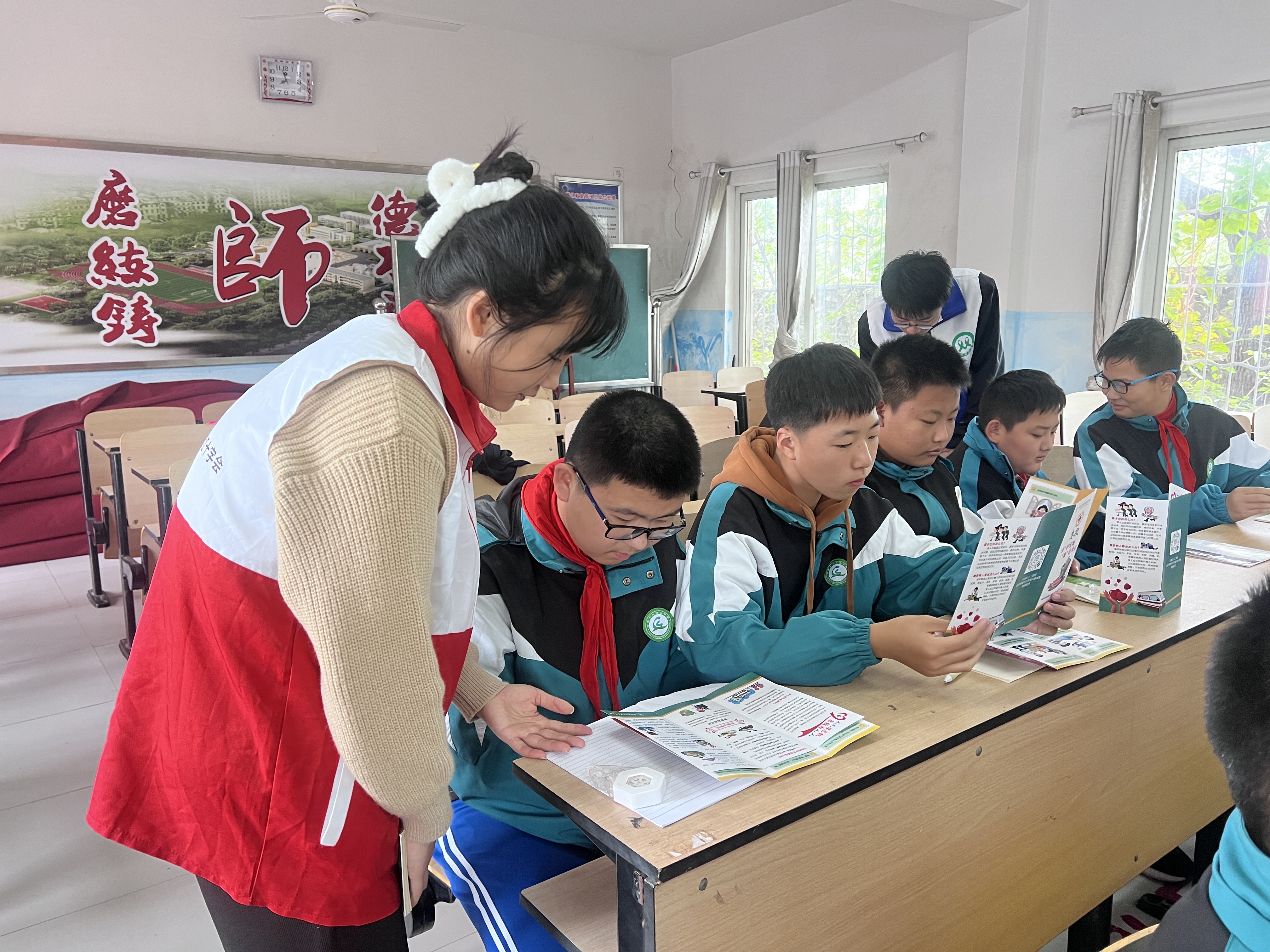 宣讲结束后,我校教师党员带领学生志愿者开展健康宣教志愿服务。