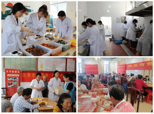 2.药学院“食为天”春芽调研团队以服务老幼人群为根本基调,在养老院、养老服务机构、社区老年食堂等地为免疫力相对较低的的老幼人群提供营养咨询并开展营养配餐活动,广泛宣传食品营养健康学知识。