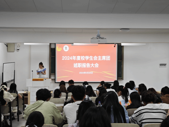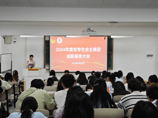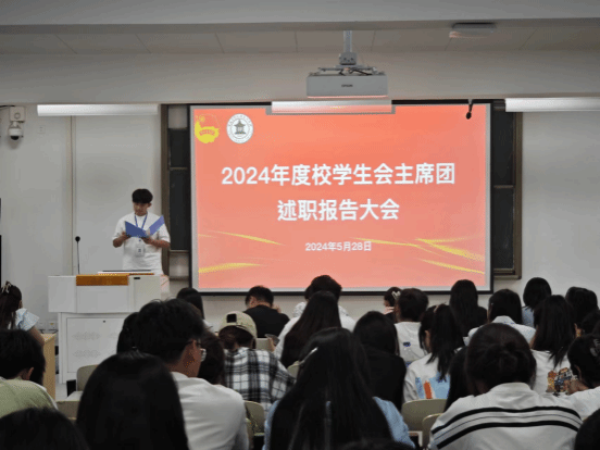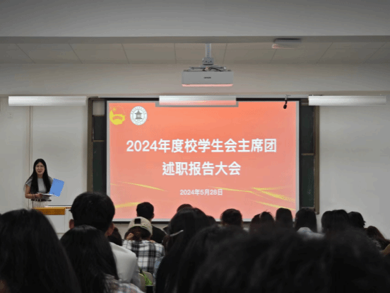 5月28日晚5时10分,为总结2023-2024学年校学生会工作成果成效,促进学生会健康发展,深化改革创新,推进从严治会,我校于教学楼第九阶梯教室召开2023—2024学年校学生会主席团述职报告大会。学生委员会成员、各级(校级,院级)学生会全体成员参加了本次会议,团委老师出席并指导本次评议工作。