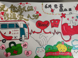 以献血为主题的绘画作品展示中,同学们纷纷为自己喜欢绘画作品投票。