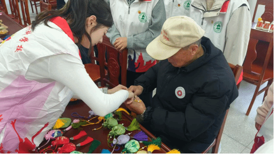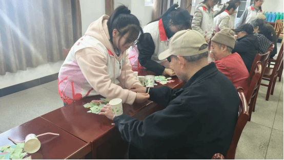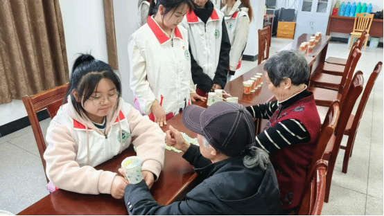 活动尾声,学员们和老人共同开展了“传乒乓球游戏”和“双手抓纸条”游戏,现场欢声笑语不断,气氛融洽。此外,学员们还指导老人制作了适合他们的香囊,传授了制作方法和健康知识。老人对这些活动赞不绝口,感叹年轻一代的细心与关怀。