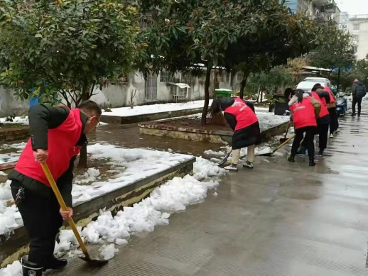 王心悦(左二)在迎江区皖江社区参加扫雪除冰志愿服务