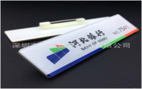 7cm*2cm双层亚克力材质, 中间印刷,背有别针 |