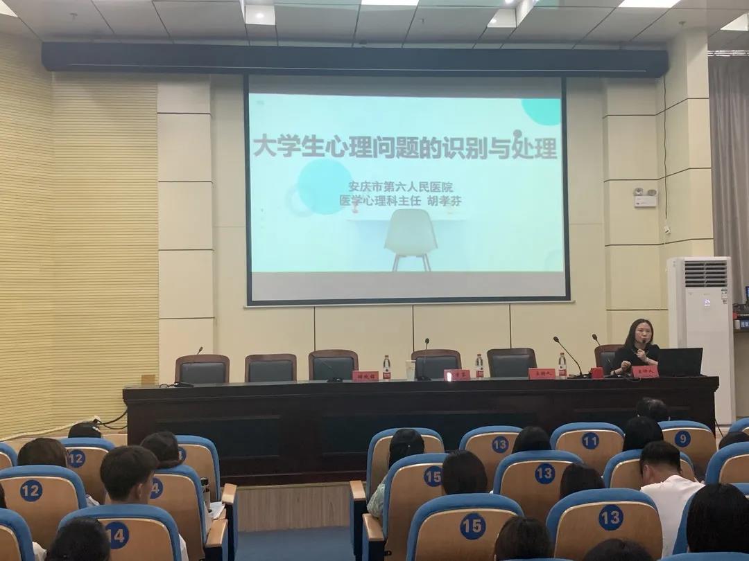 启动仪式结束后,由胡孝芬给在场师生带来了一场题为“大学生心理问题的识别与处理”的精彩讲座,胡孝芬从心理正常与心理异常、常见心理异常的症状、学生中常见心理疾病的识别与心理问题的处理四个方面,由浅入深地为在座师生普及了精神病学和心理学相关的知识,并介绍了大学生心理健康的判断标准,着重讲解了大学生常见的心理问题以及应对措施。此次胡主任的讲座,有效地为学校心理健康教育工作提供了思路,对和谐校园建设起到了良好的推进作用。