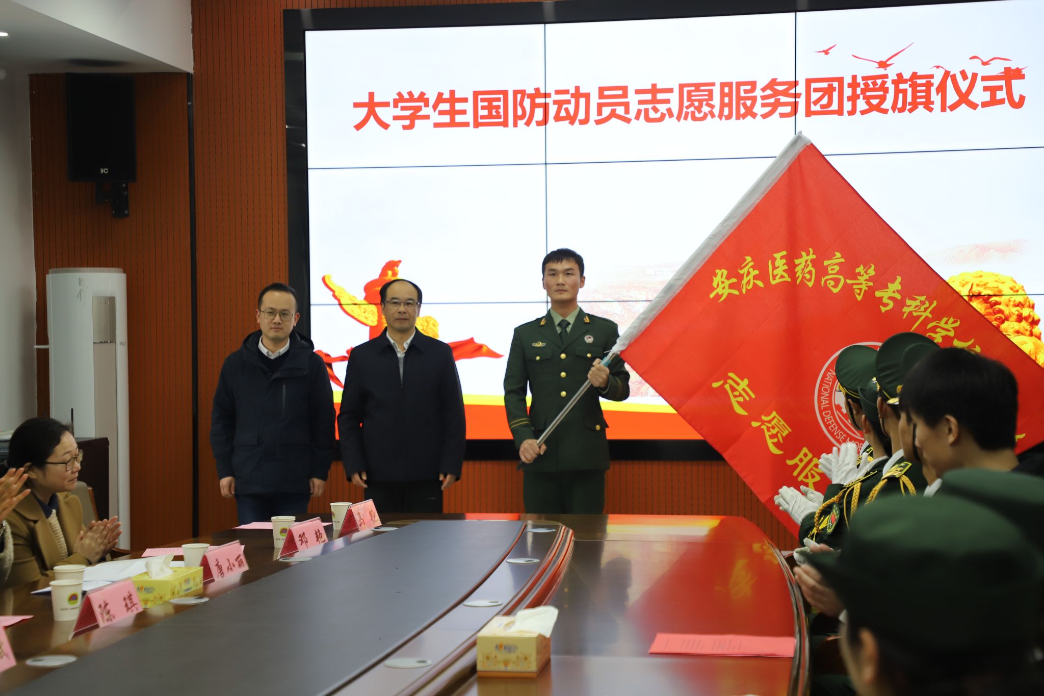 陈礼和鲍瑜斌共同为我校大学生国防动员志愿服务团授旗,志愿服务团团长代蒙恩和预征入伍代表王佳豪表态发言。大学生国防动员志愿服务团的成立,通过推进青年志愿服务社会化发展,组织开展主题志愿活动等,增强全民国防观念,激发同学们爱党爱国爱军的政治热情。作为大学生国防志愿者不仅是一种荣誉,更是一种职责和使命,进一步增强国防意识,积极宣传国防法规,用自己的实际行动为国防建设贡献自己的力量。