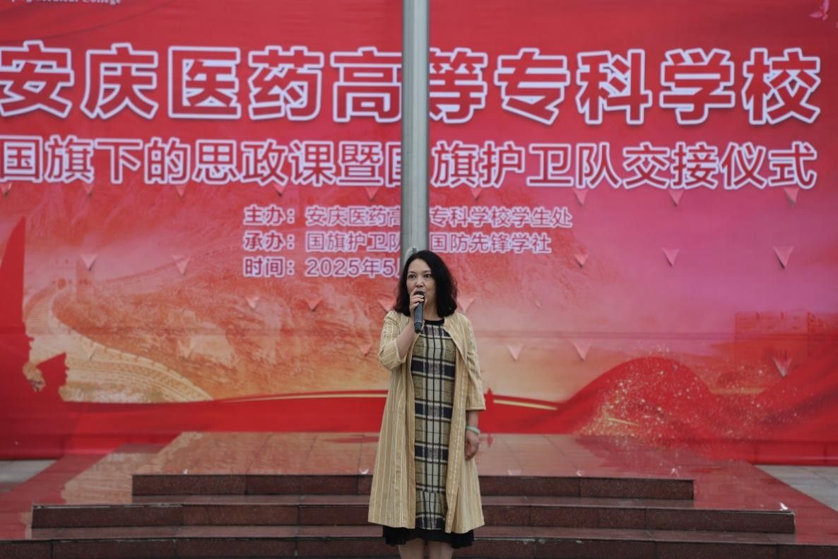 以护卫国旗为己任,以使命传承为担当。为厚植青年爱国主义情怀、筑牢理想信念根基,传承国旗护卫队优良传统,加强队伍建设,5月21日清晨,安庆医药高等专科学校国旗下的思政课暨国旗护卫队交接仪式在至善广场庄严举行。出席本次活动的有校党委委员、党政办主任陈琪、学生处老师及各学院征兵专员老师。校国旗护卫队成员、国防先锋学社、各学院学生干部代表300余人共同见证这一重要时刻。