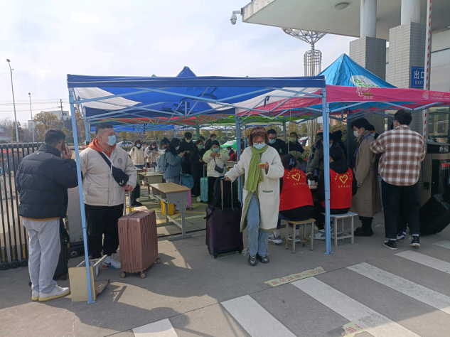 19日一早,学校门口就已设立好安全返校的防疫通道,返校的同学在志愿者的引导下有序的排好了长队。“同学,请在这边扫描行程卡二维码。”“同学,请出示一下你的返校申请码。”“同学,我帮你测量体温。”“同学,我帮你的行李箱消一下毒。”校门口、通道旁、行李暂放处,都是志愿者们忙碌的身影。一幕幕场景,一帧帧画面,都充满了温馨。最后返校的同学在志愿者的引导下由安全通道前往护理学院实训楼一楼护士站排队进行核酸检测。