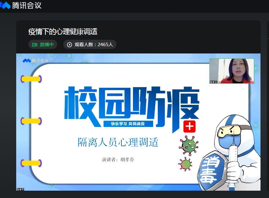 为提升广大师生的心理防护能力,发挥辅导员和班级心理委员在心理健康保卫战中的重要作用,校大学生心理健康教育与咨询中心邀请校内外专家开展了2场线上心理健康教育讲座,师生累计收看约3000人次,缓解了师生在疫情期间的紧张情绪和不适心理;举办了1场班级心理委员线上培训活动,提升心理委员的整体素质,发挥朋辈工作优势,更好地开展心理互助和危机预警等工作,参训心理委员有100多人。学校还组织学生干部在操场举办了以“团结、友爱、合作”为主题的素质拓展活动,增强了学生集体归属感、舒缓疫情管控期间心理压力,展现良好精神面貌。