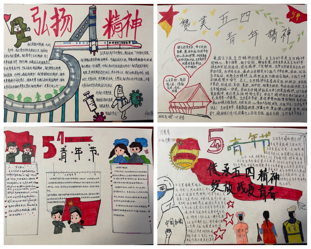 为了培育和践行社会主义核心价值观,弘扬中华优秀传统文化,践行五四青年精神。在五四青年节来临之际,我校中职班开展了以“手绘青春·心系祖国”为主题的手抄报活动,来自中职班的22名参赛青年学子们也用她们各自的爱国之情画出新时代的青年华章。通过一张张画纸、一个个故事、一份份旧照,生动地展现中国共青团的历史轨迹和中国青少年的奋斗足迹,彰显艰苦奋斗、自强不息、勇挑重担的青春担当。“通过参加手抄报活动,我学习到了很多党史、青运史、铸牢中华民族共同体意识等方面的知识,在比学赶超的学习氛围中更加坚定了我听党话、跟党走的信念和信心。”刚参加完手抄报来自20级护理专业新疆维吾尔族小姑娘参赛选手苏比娅·赛依达合买提感慨道。