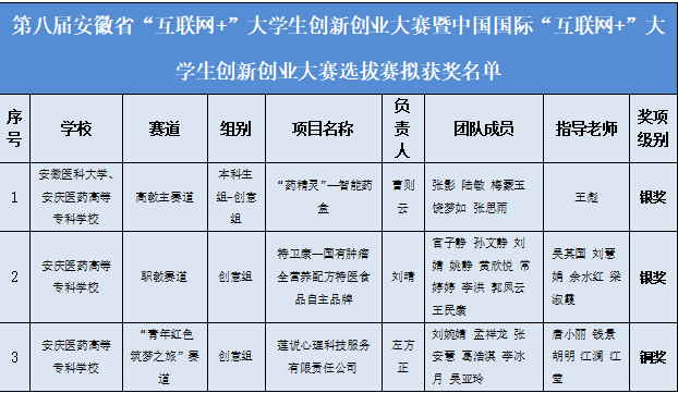 9月15日, 由安徽省教育厅与合肥市人民政府联合主办,合肥工业大学、合肥学院、合肥职业技术学院、安徽财贸职业学院和合肥市教育局共同承办的第八届安徽省“互联网+”大学生创新创业大赛暨中国国际“互联网+”大学生创新创业大赛选拔赛已圆满结束。大赛经专家网评、线上分组赛和线上极速路演等环节,我校参赛项目获安徽省银奖2项,铜奖1项。