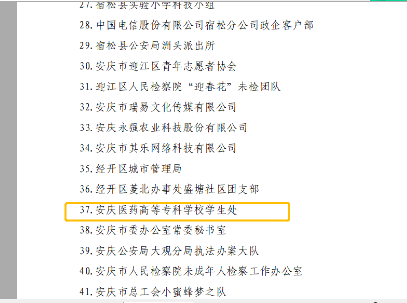 我校学生处喜获2021-2022年度“安庆市青年文明号”集体单位。学生处在校党委的领导下以创建市级“青年文明号”为契机,充分发挥青年教师和学生的主力作用,全面推行以学生为本,提高办学质量和育人水平。在学生管理、辅导员管理、国防教育、就业创业、心理健康教育、资助育人、中职班工作等以及部门的日常工作中,以学生为中心,积极服务于师生,为学校全面发展贡献青春和力量。(学生处)