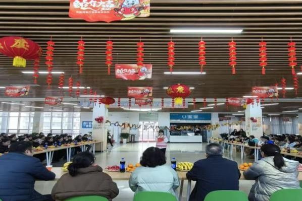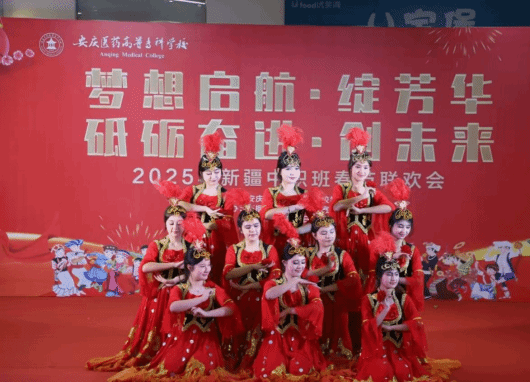 1月26日,学校食堂二楼张灯结彩,欢声笑语不断,中职班“梦想启航·绽芳华 砥砺奋进·创未来”春节联欢晚会在这里精彩上演,安庆市直各部门领导与全体中职班师生欢聚一堂,共迎新春。晚会在欢快的舞蹈《丰收锣鼓闹新春》中拉开帷幕,歌曲、舞蹈、戏曲、朗诵等节目轮番登场,精彩纷呈。同学们用歌声唱响对祖国的热爱,用舞蹈表达对美好生活的向往,用欢声笑语传递着民族团结的深情厚谊。