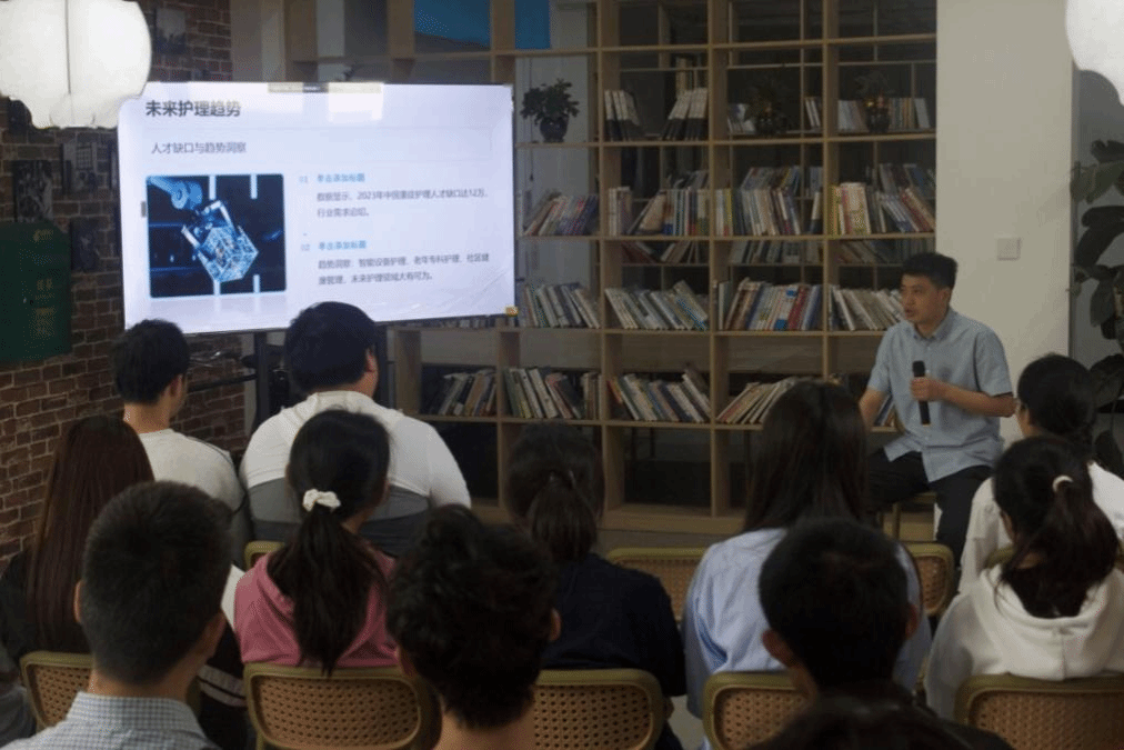 为使我校学生更加全面了解护理学专业,帮助同学们分析未来发展方向,提高就业竞争力。进一步弘扬五四精神,团结引领全校学生坚定理想信念。学校将“一站式”学生社区作为重要的平台载体, 4月23日下午在“一站式”学生社区邮咖驿站开展“杏林先锋坊”就业创业人生导师第三期沙龙讲座,此次讲座中,党委委员陈琪、学生处、团委、专职辅导员、学生等40余人参与。