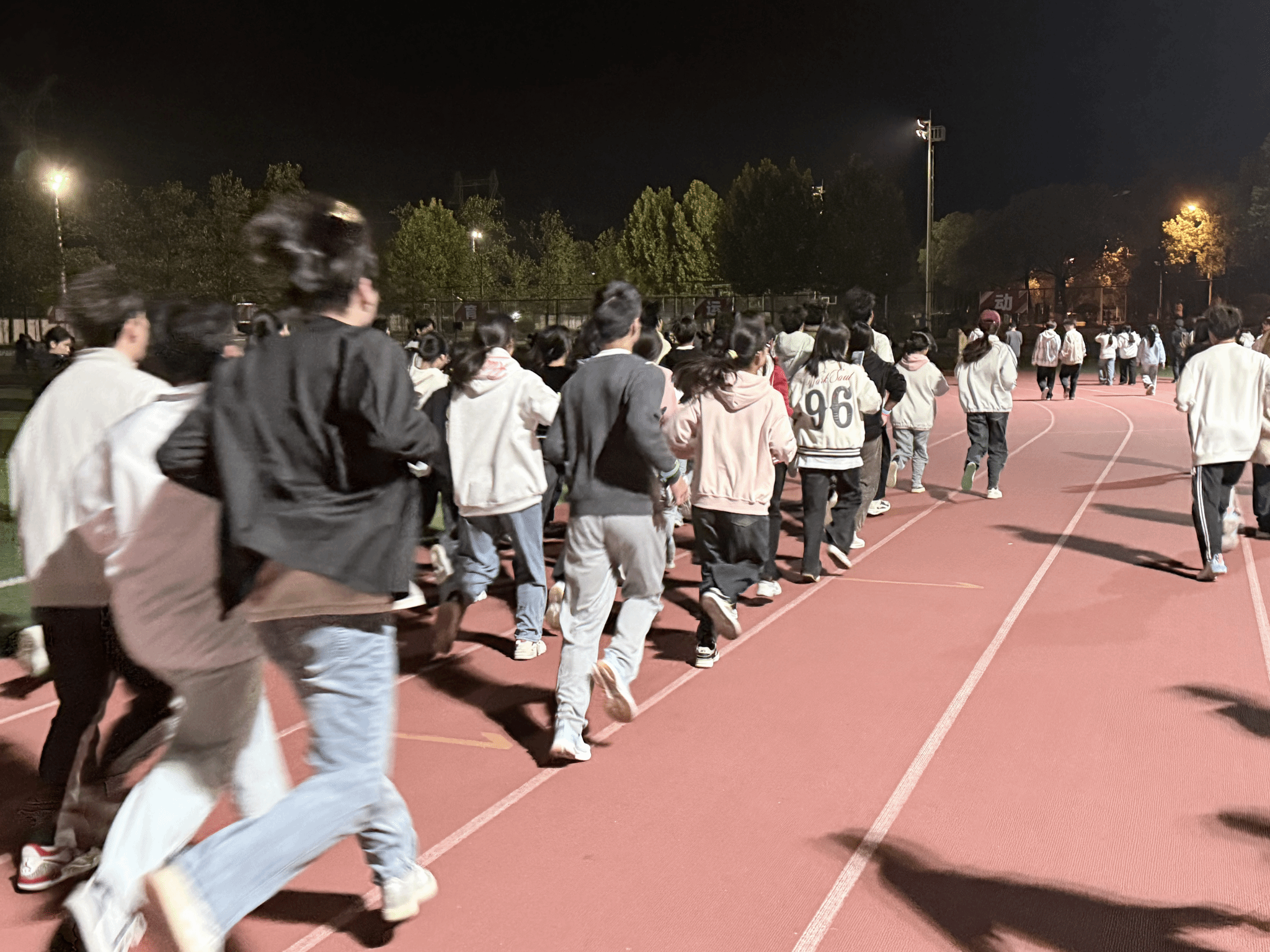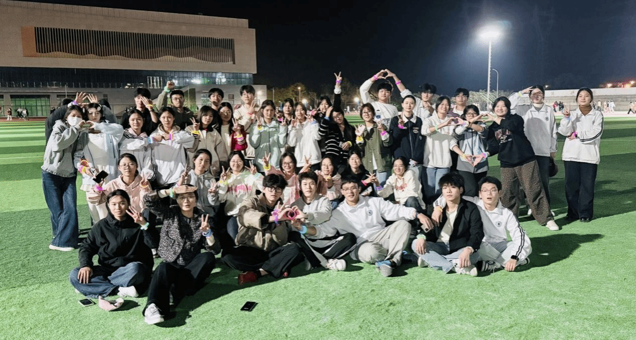 在活动筹备阶段,工作人员精心筹备了荧光手环、夜光发箍等装备,确保每位参与者均能在夜色中绽放独特光彩。众多学生更是创意迸发,自发运用荧光颜料在面部绘制校徽、星星等图案,将整个田径场瞬间幻化为一片璀璨夺目的“荧光海洋”,营造出浓厚的活动氛围。