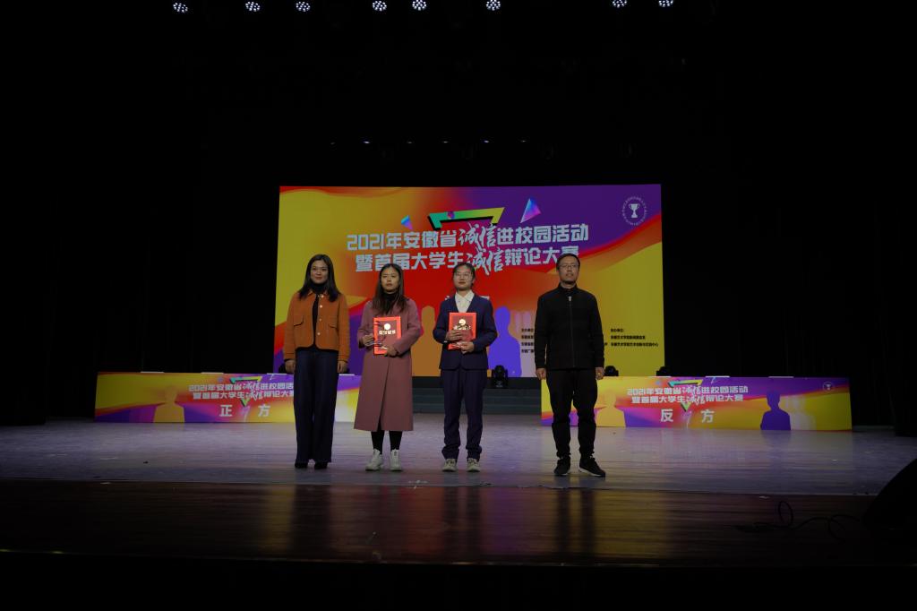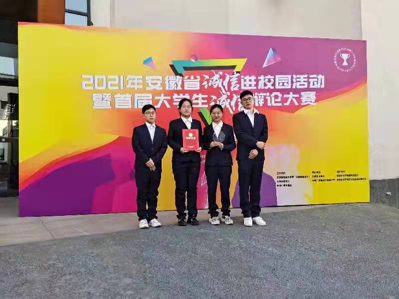 2021年12月4日,2021年安徽省诚信进校园活动暨首届大学生诚信辩论赛总决赛在安徽艺术学院圆满落幕,我校参赛队荣获季军。