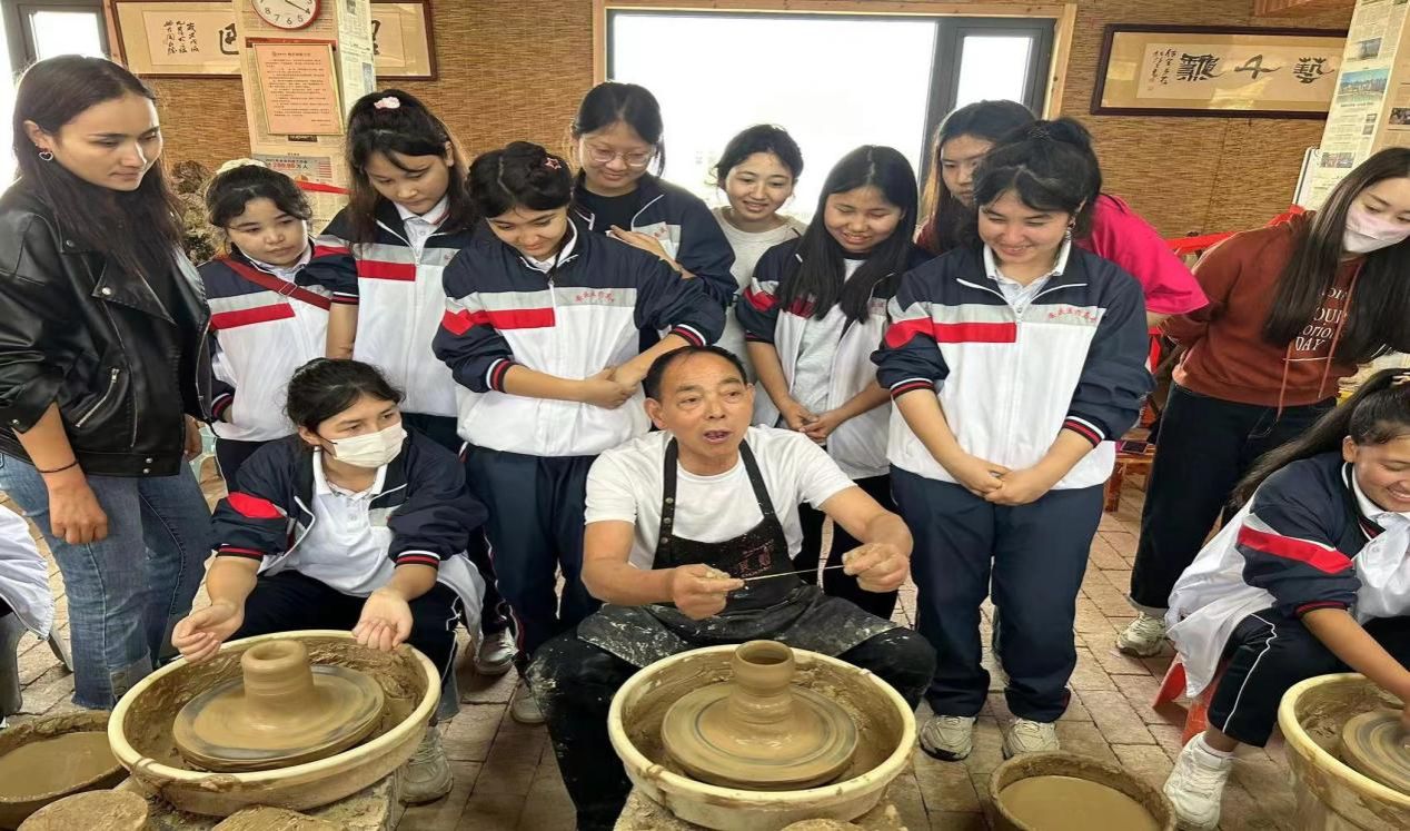随后在痘姆乡古陶制作现场,同学们“走进非遗、与陶有约”在这里与古陶进行一场跨越千里的约会。同学们在老师的精心指导下,认真地挑选陶土、搅拌泥料、塑造形状,学习陶艺知识,体验陶艺制作的乐趣,深深感受到非遗古陶传统文化的魅力。