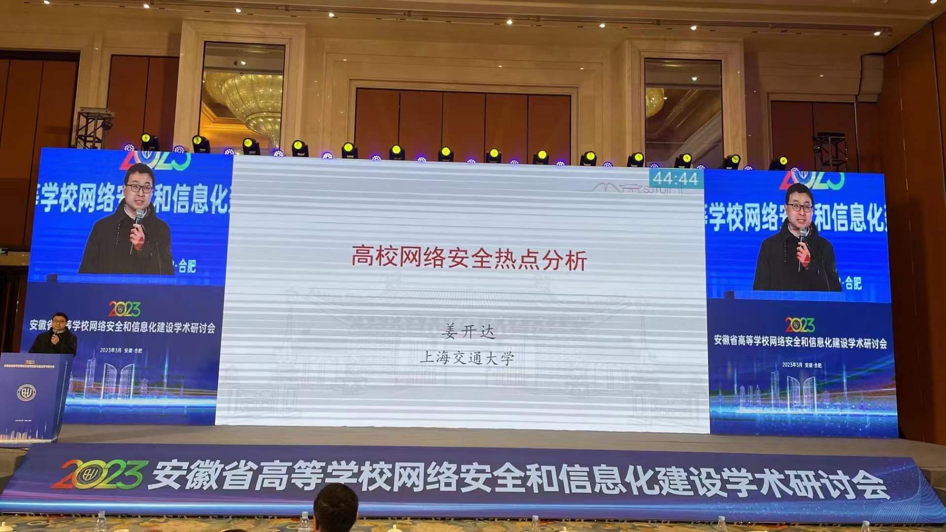 会议邀请了兰州大学、浙江大学、中国科学技术大学等国内双一流高校信息化建设专家就高校网络安全和信息化建设、智慧校园建设、教育数字化转型等内容进行了交流研讨,并针对2022年安徽省教育系统攻防演练进行了总结。会议上,各位专家就各自高校信息化建设及数字化转型时所走过的弯路,面临的机遇与挑战与各参会单位进行了深入交流。