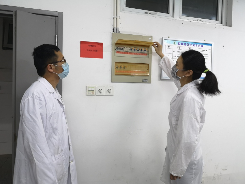 此次检查着重督查实验室危化品、压力容器、病原微生物等安全管理,并对实验室门窗、水电、通道等进行了安全测试。另外,为强化疫情期间实验室 的安全防控工作,本次检查还将《医学基础部实验室疫情防控期间管理办法》在各实验室显目位置进行了张贴。(撰稿:杨元元;供图:李智、丁文渊;审核:刘毅)