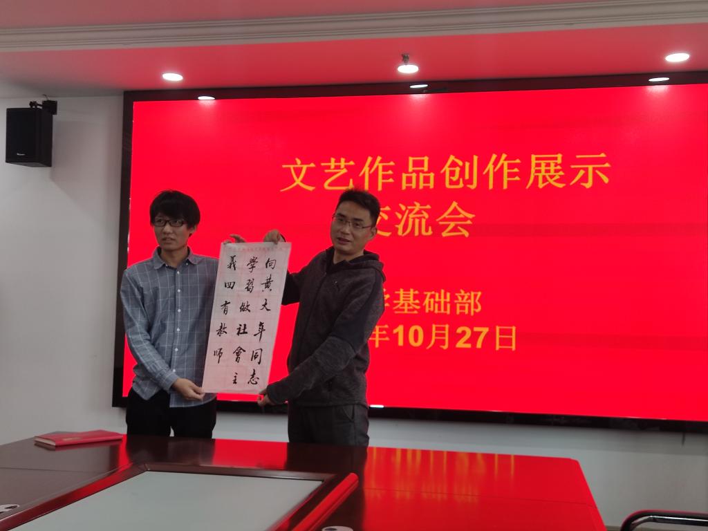 10月27日中午12点30分,医学基础部在图书馆六楼会议室召开“师德师风”文艺作品展示交流会,系部全体人员参加了会议,会议由系部主任李济平主持。