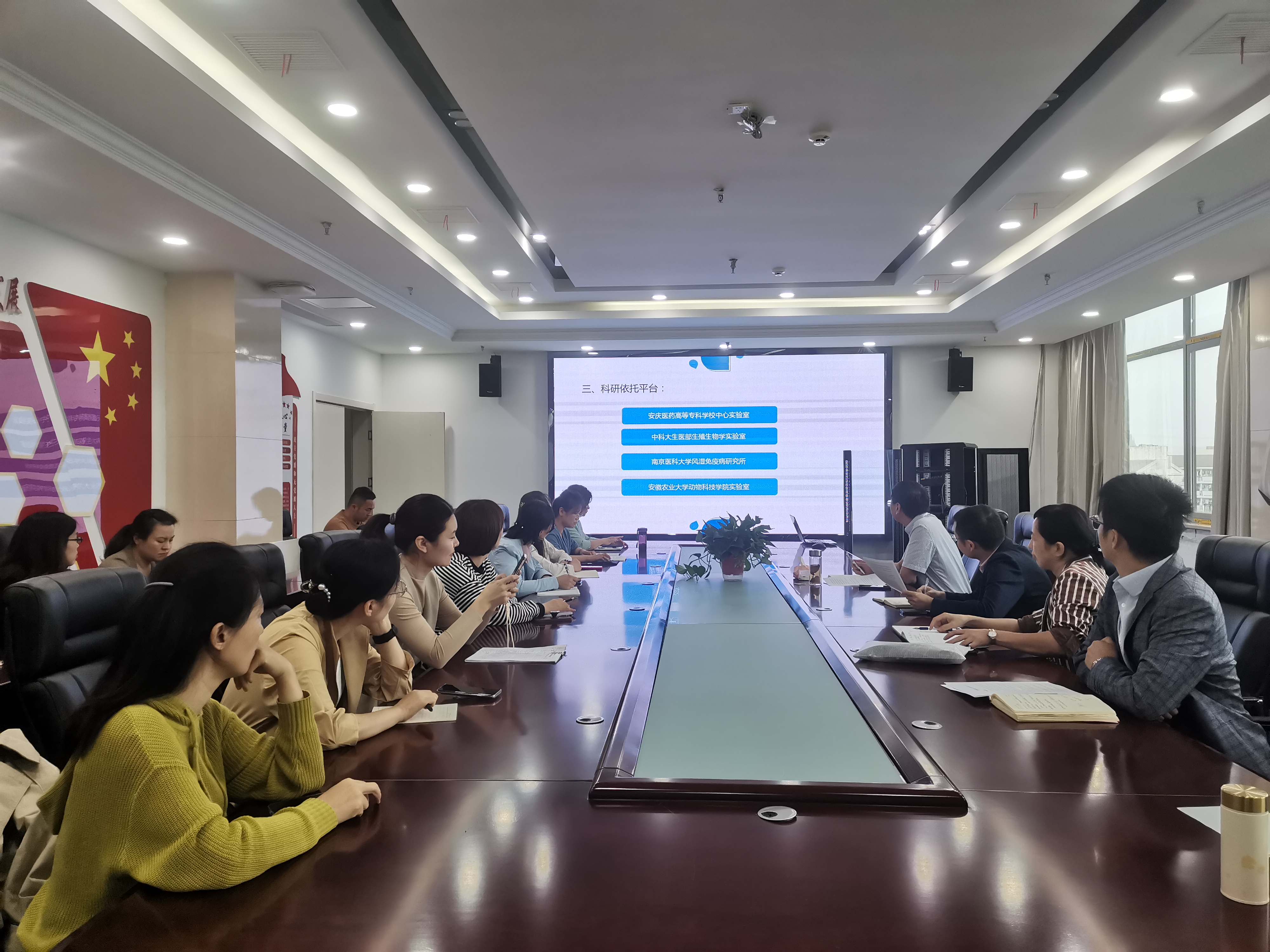 9月22日上午,科技处处长盛辉、副处长吴其国、安庆市中医院科技科科长刘习枝一行莅临我院调研指导科研工作。我学院近年有科研课题的教师参加了会议。
