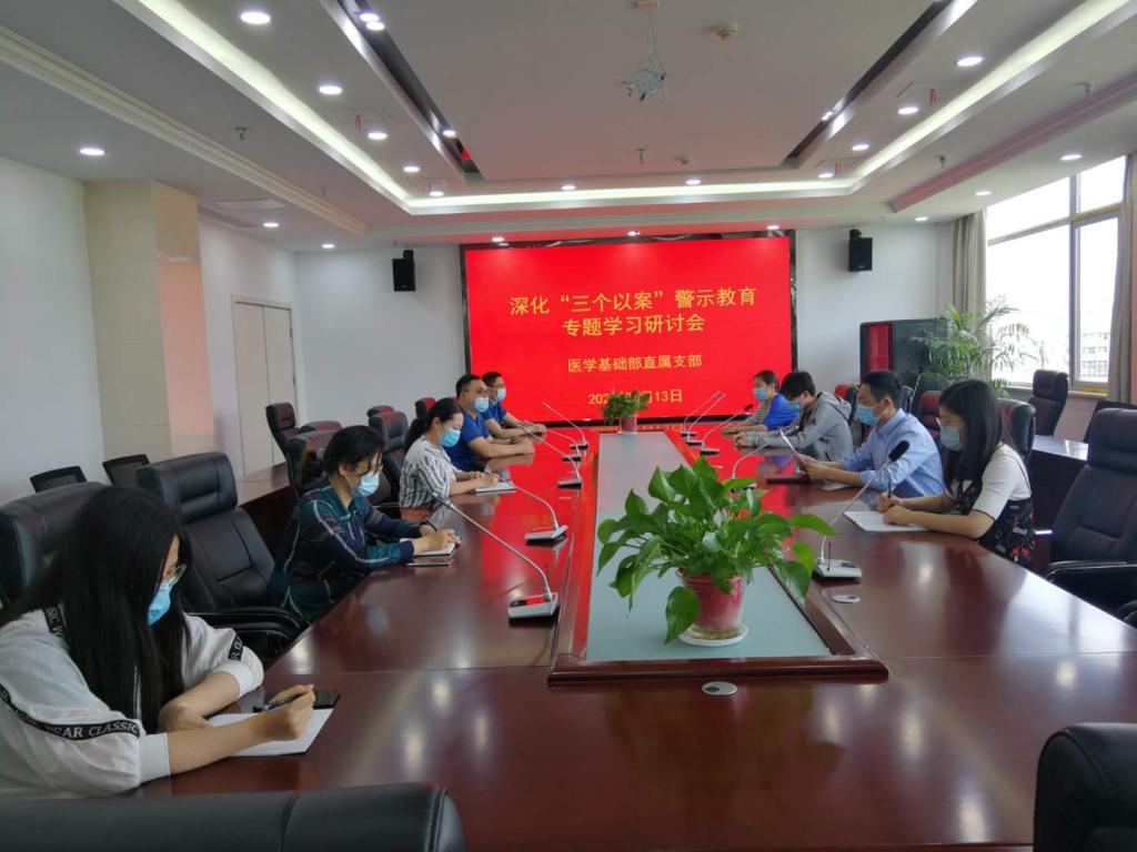 5月13日,医学基础部直属党支部在图书馆六楼会议室召开深化“三个以案”警示教育专题学习研讨会,医学基础部直属支部全体党员参加会议,刘毅主持会议。